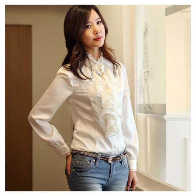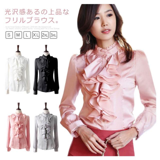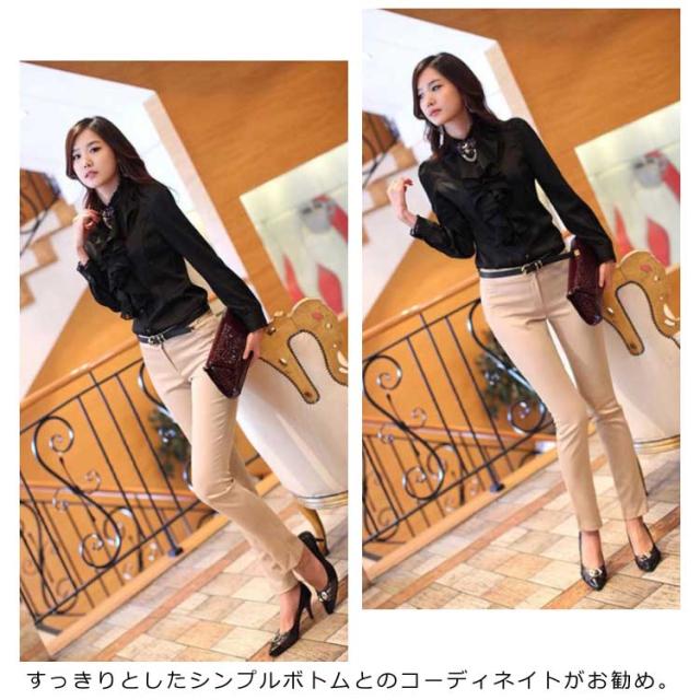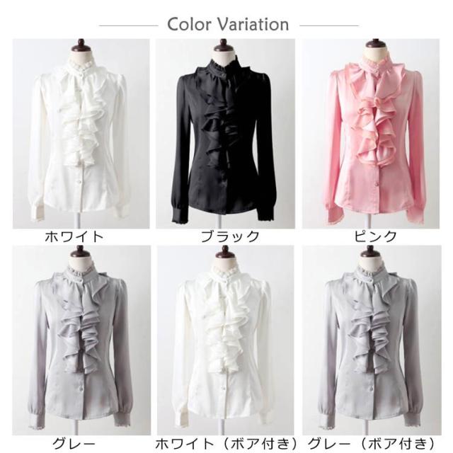 2タイプ選べる シフォン 長袖 フリルブラウス 胸元フリル トップス ビジュー付き フリルシャツ レディース タイト ハイネック裏ボア付き 光沢あり 豪華 フリル付き シャツ ブラウス 通勤 オフィス フォーマル
