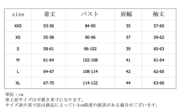 | サイズ | 2XS XS S M L XL 2XL |