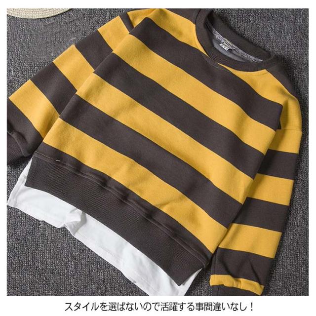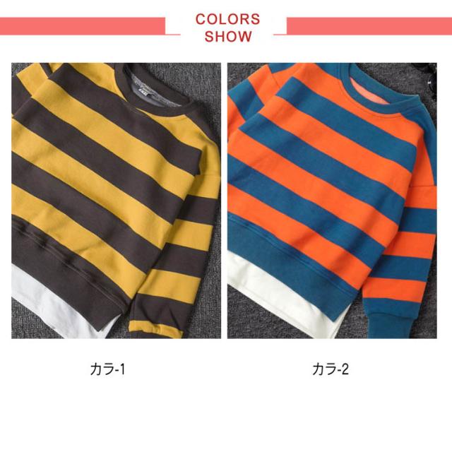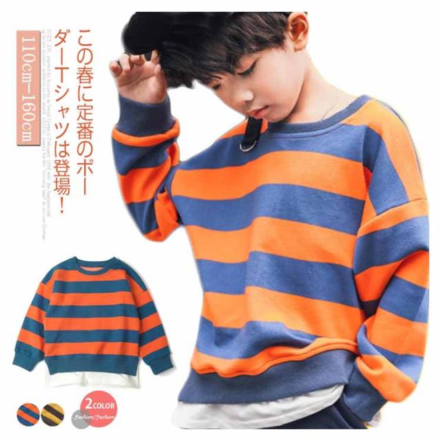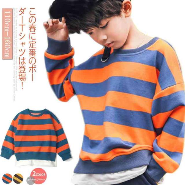 Tシャツ カットソー 男の子 重ね着 長袖 パーカー 春服 ボーダー カジュアル 子供服 キッズ服 クルーネック ロンT トップス 長袖Tシャツ 110/120/130/140/150/160送料無料