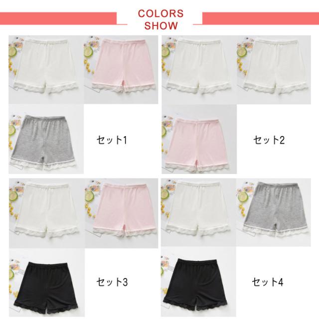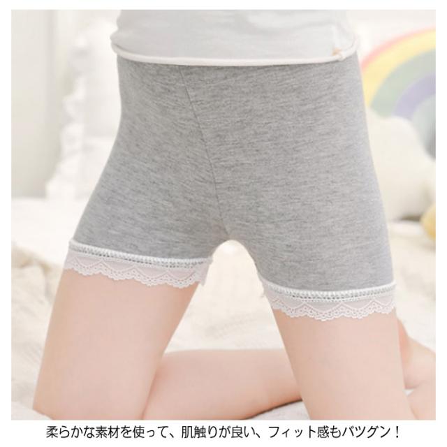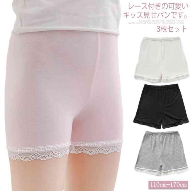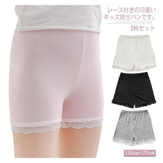 送料無料【3枚セット】見せパンツ ペチパンツインナーパンツ ショートパンツ 見せパン 可愛い 子供服 女の子 キッズ 下着 インナー レース付き