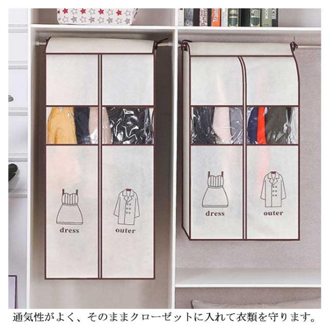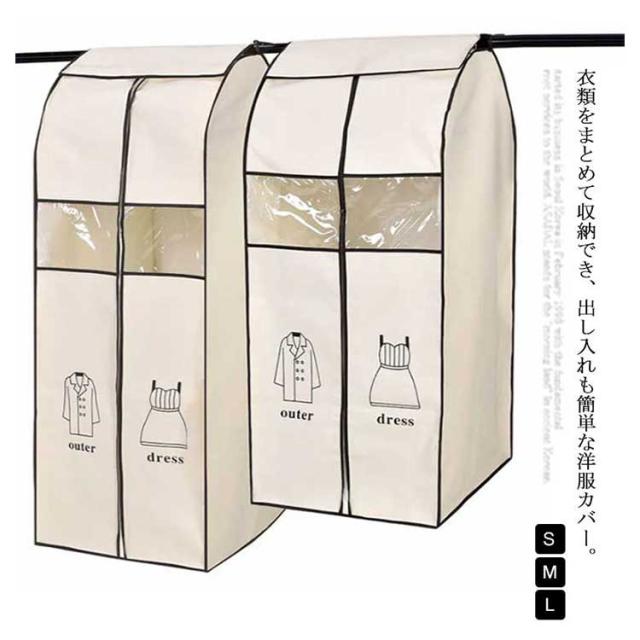 洋服カバー 衣類カバー 衣類収納 衣類ケース 収納袋 収納ケース 衣類 整理 収納 防虫 ジャケット コート ワンピース パンツ 収納 汚れ よけ 埃 吊るせる