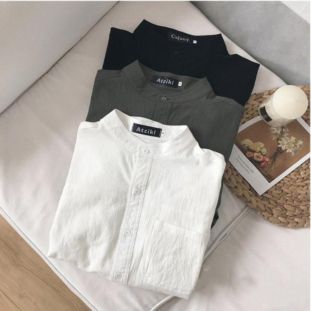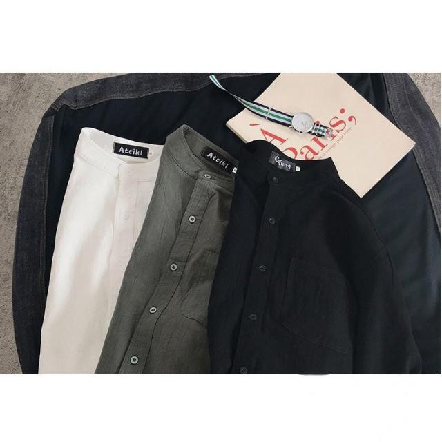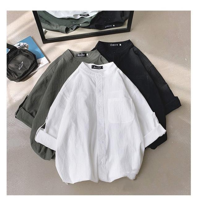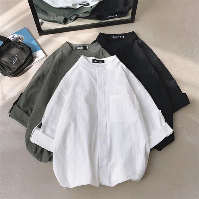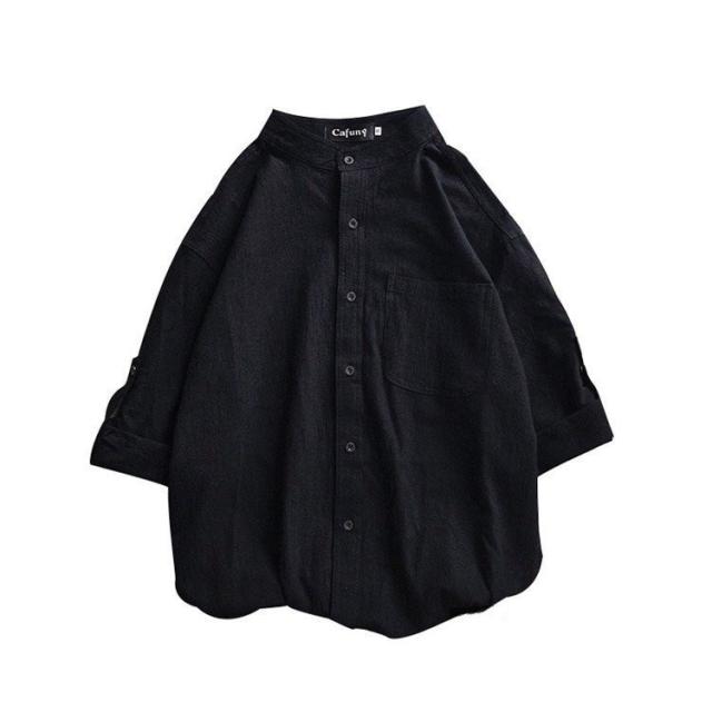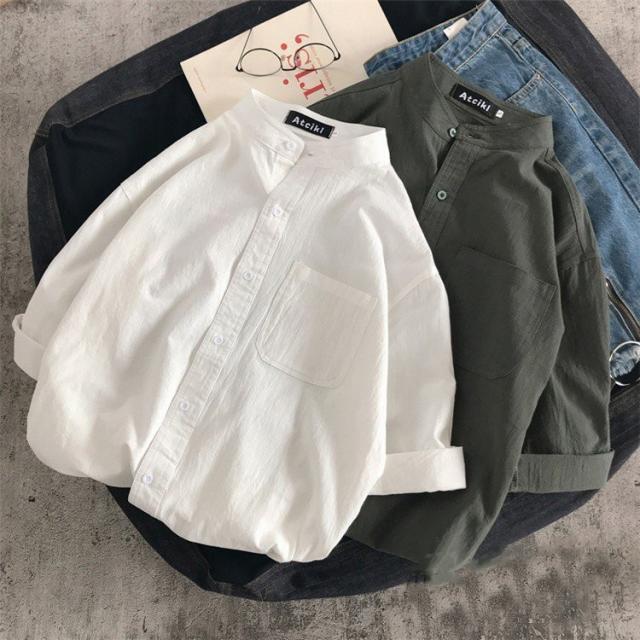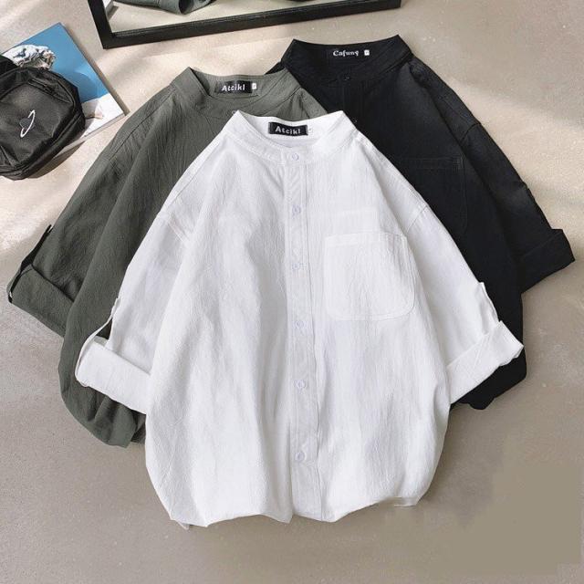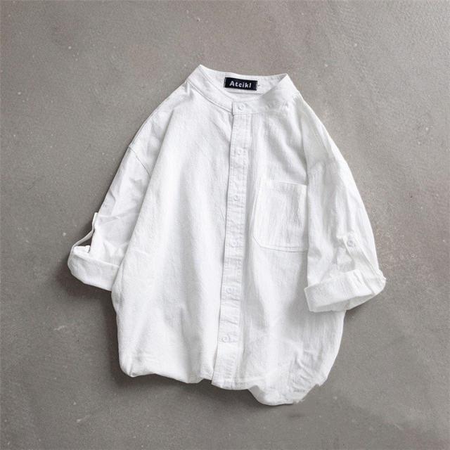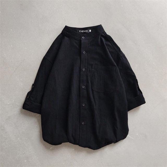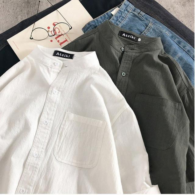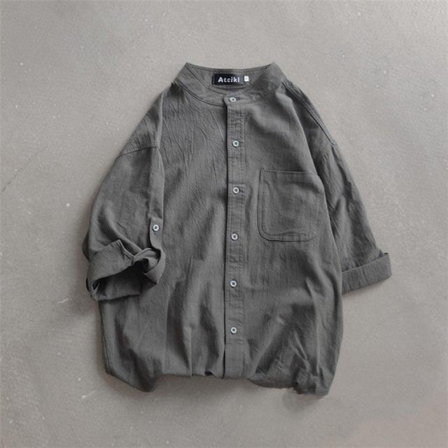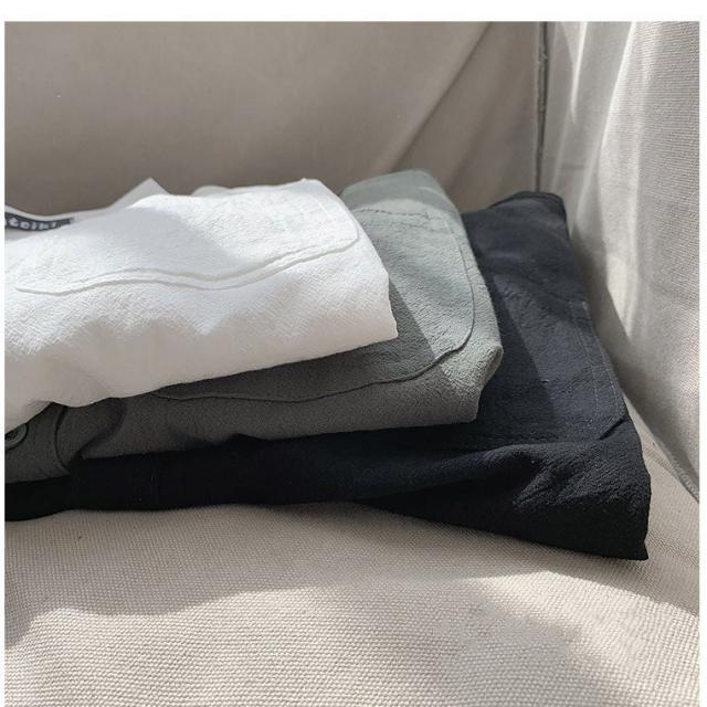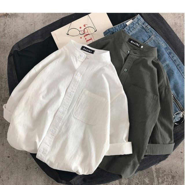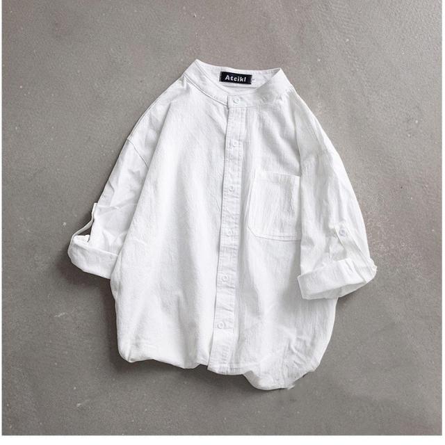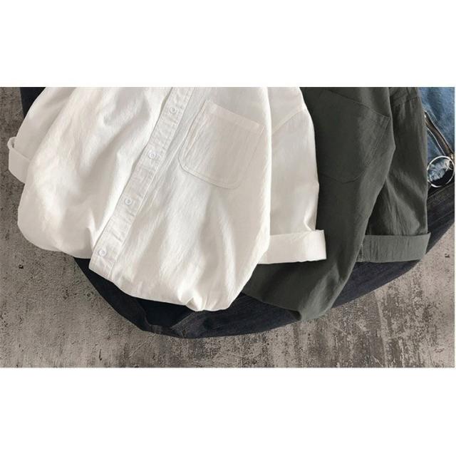 シャツ ブラウス長袖シャツ トップス前開き シャツブラウス男性 メンズ無地 長袖ポケット付き シンプルコットン 綿ゆったり 体型カバー秋