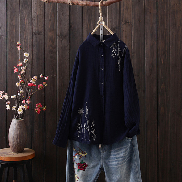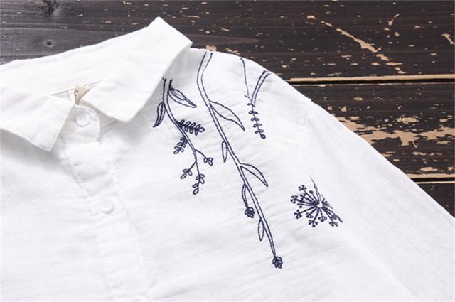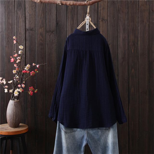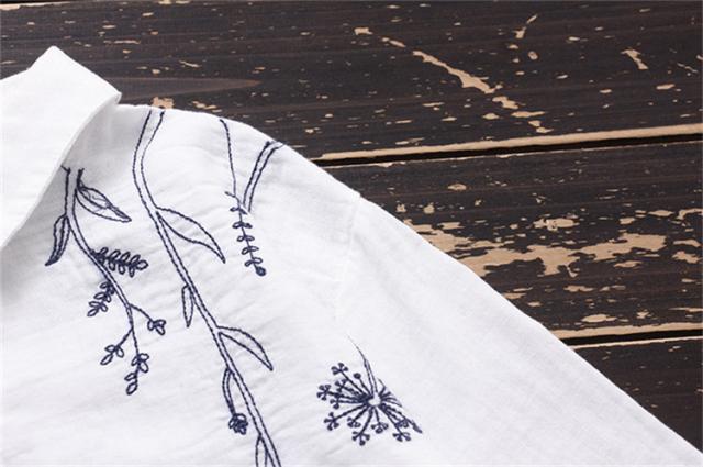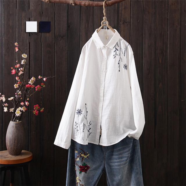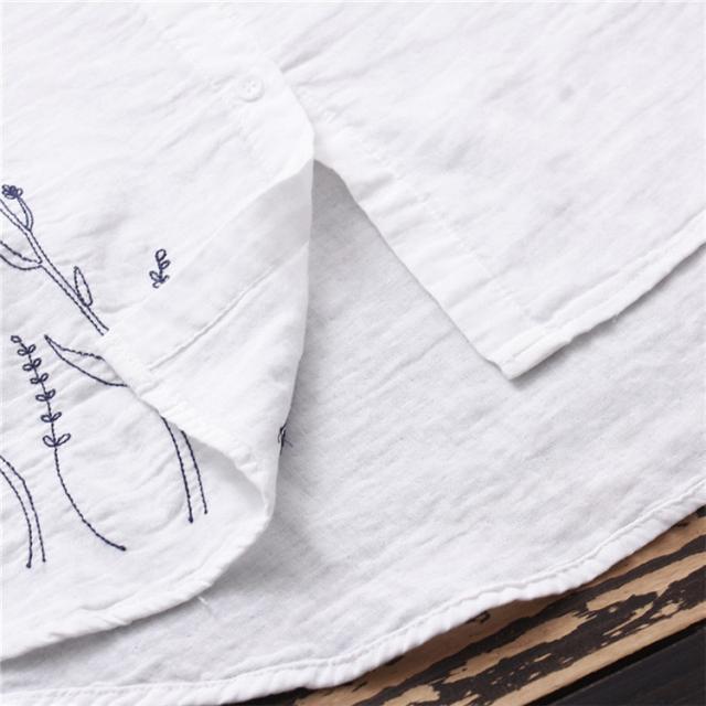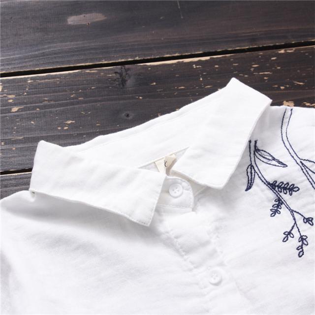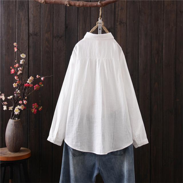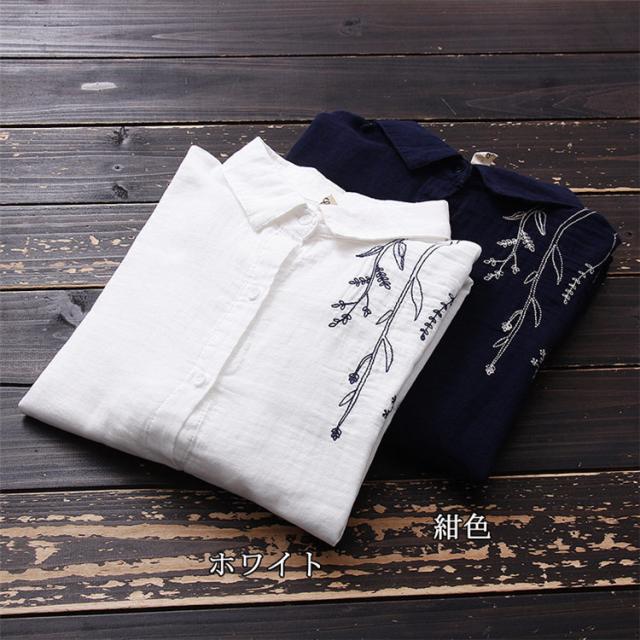 レディース 白シャツブラウス トップス折り襟 シャツ無地 長袖コットン 綿刺繍 前開きコーデ シャツブラウス春 ガーゼカジュアル 秋ベーシック 快適
