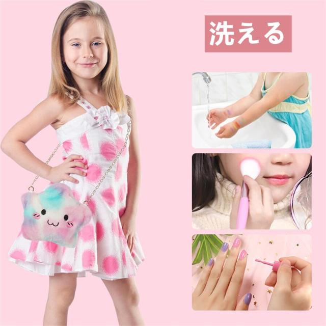 【可愛いデザイン】星での斜めかけのポーチのデザインで、ファンション性にも兼ねながら、化粧品おもちゃんも収納できます。これで持ち歩き便利です、子供はいつでもどこでも化粧を楽しむことができます。水で簡単に落とせるからお肌にも負担をかけず安心してメイクを楽しむことができます。