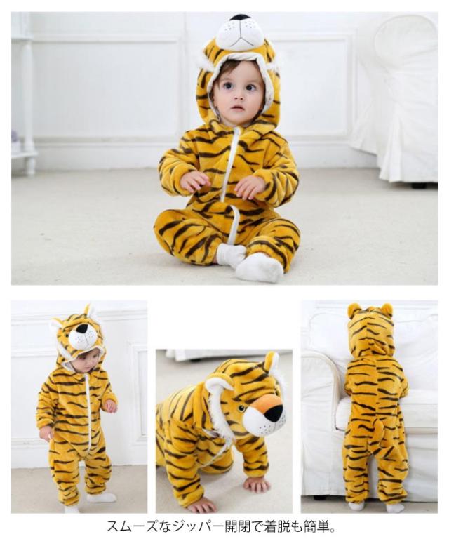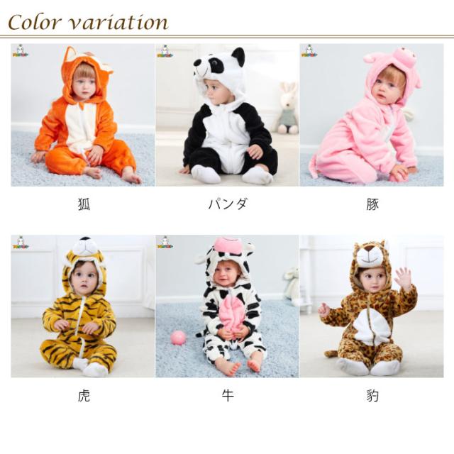 着ぐるみ ベビー 虎 豹 狐 パンダ 豚 牛 ウサギ ライオン モンキー とら トラ 動物 秋冬 着ぐるみ ふわふわ もこもこ カバーオール ロンパース 長袖 パジャマ ルームウェア