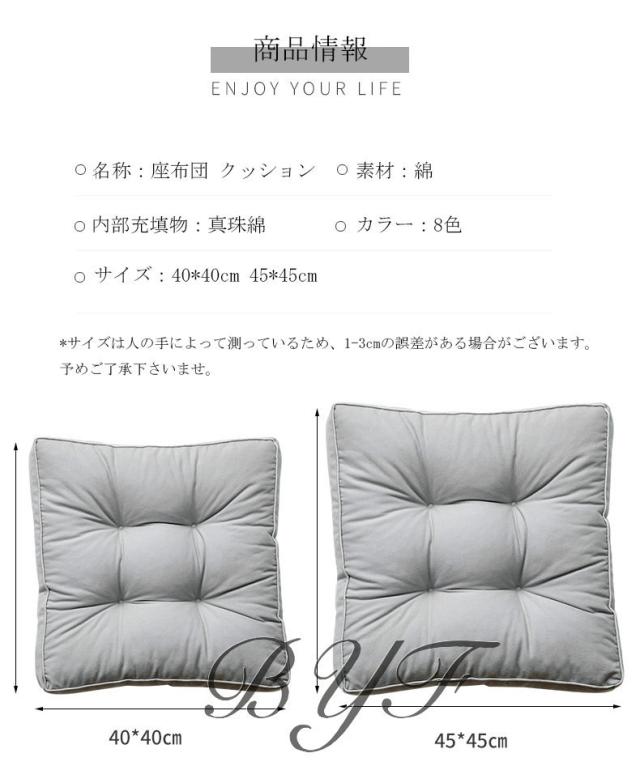 | サイズについての説明 | 触り心地はとてもよく、ふわふわで癒される。 ご家庭でのくつろぎの時間にはもちろんのこと、パーティやイベントでも大活躍しちゃいます! ご自宅のソファーやベッドルームはもちろん、オフィス、車も利用できます。 座布団 クッション おしゃれ フロアクッション 新作 座布団 クッション おしゃれ 厚手 フロアクッション 新作 北欧 可愛い 新居 正方形 座椅子 座イス 北欧 シンプル 布地 スウェット コットン 大きめ ふかふか ▲サイズ:40*40cm 45*45cm 【注意】 ▲サイズは人の手によって測っているため、1-3cmの誤差がある場合がございます。予めご了承下さいませ。 ▲モニターの発色の具合によって実際のものと色が異なる場合がございます。実際の商品に近いカラーはカラーバリエーションをご参考にしてください。 |