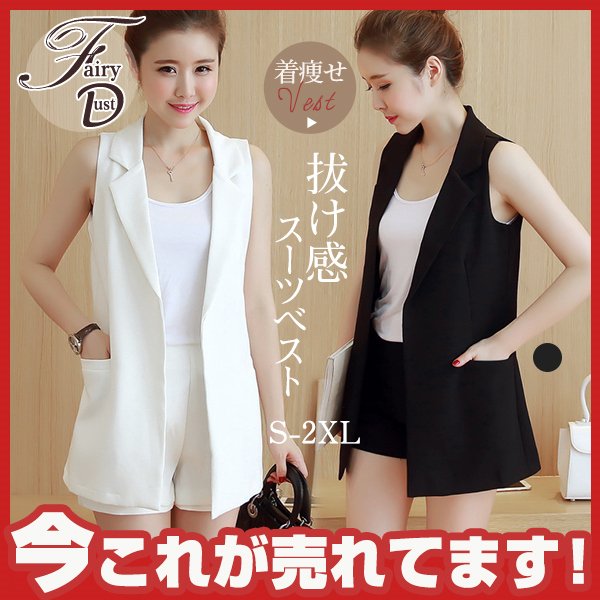 アウター ノースリープ 裏地あり スーツベスト スプリングコート OL ミディアム丈チョッキ レディース 春コート秋服 オシャレ スーツベスト