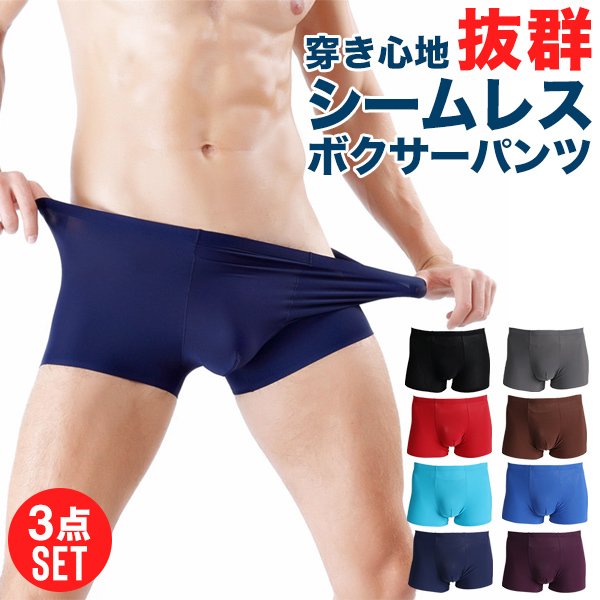 3点セット シンプル シームレスパンツ ボクサーパンツ インナー メンズショーツ 速乾 シームレスパンツ メンズ