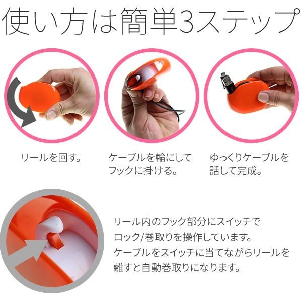 | サイズについての説明 | イヤホンでも充電ケーブルでもなんでもスッキリ巻取ります。 スマホ等のケーブル以外でもアィディア次第で様々な物をまとめる事ができます。イヤホン、ヘッドホンのケーブルなどのAV機器のコードをまとめるのにも最適。 |