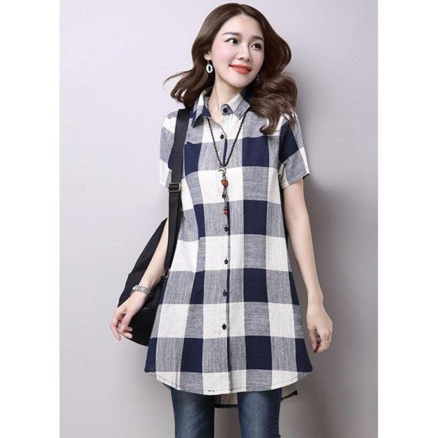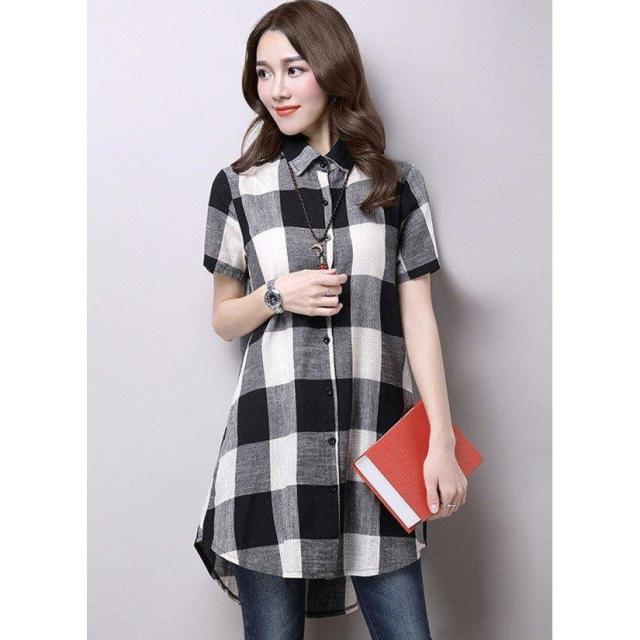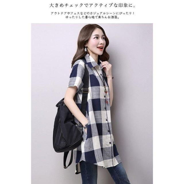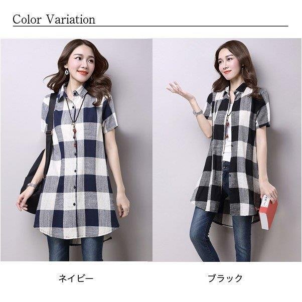 チェック 膝丈 ギンガムチェック ロングシャツ ワンピース 半袖 カジュアル 半袖