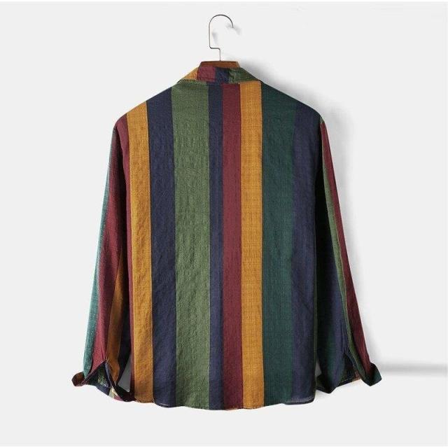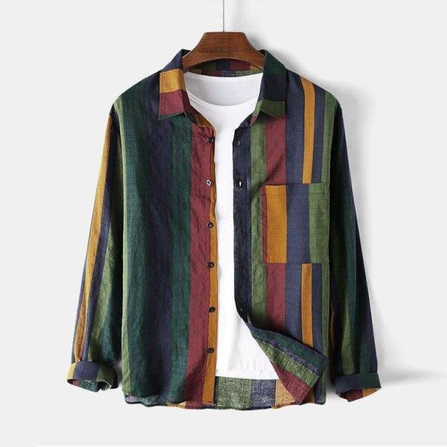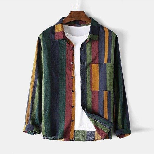 長袖 カジュアルシャツ ストラップ 綿麻 カラー配色 メンズ スリム オシャレ アメカジ カジュアルシャツ