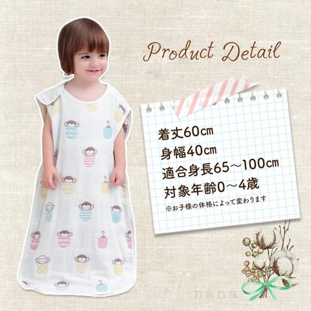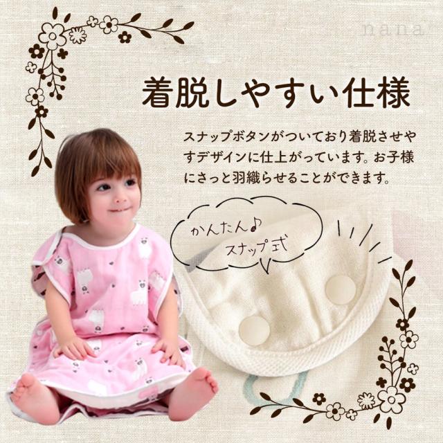 | サイズについての説明 | ※複数購入時、送料の関係上1つずつの発送になります。 1つずつクリックポストの追跡番号が付きますのでご安心ください。 【商品説明】 空気の層が6重ガーゼの中にできるので赤ちゃんを優しく包み込みます。 寝返りをうってもはだけることなく、冷えから守ります。 夜中に何度もお布団を掛けてあげるママの負担もぐっと軽くなります。 寝ている間、汗をかきやすい赤ちゃんも、100%綿なので汗をよく吸収してくれ、快適でポカポカ。 洗いこむほど柔らかくなり、ガーゼ特有のふんわり感がアップします。 おもらし対策にも使えます。 |