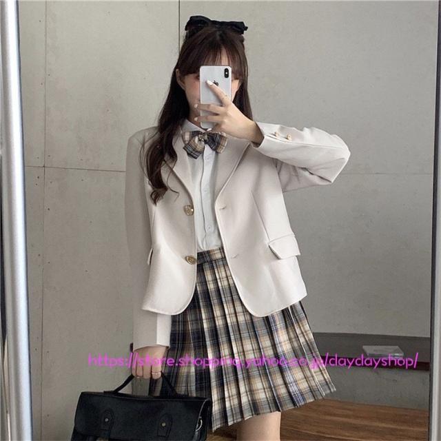 セットアップ チェック柄 プリーツスカート ジャケット セットアップ 3点セット 上下セット 可愛い シャツ 制服風 女子高校生 卒業式 入学式 スーツセット