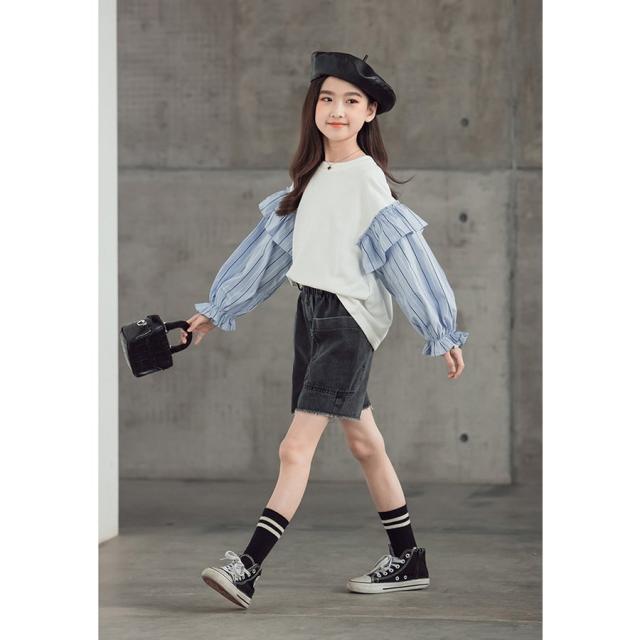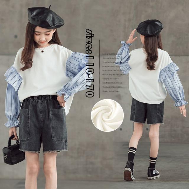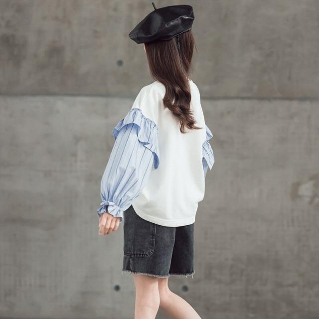 トップス パーカー 女の子 韓国子供服 韓国子供服 プルオーバー 切り替え ストライプ 長袖 おしゃれ 子ども服 ゆったり カジュアル 可愛い ジュニア服 春秋
