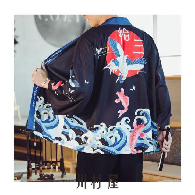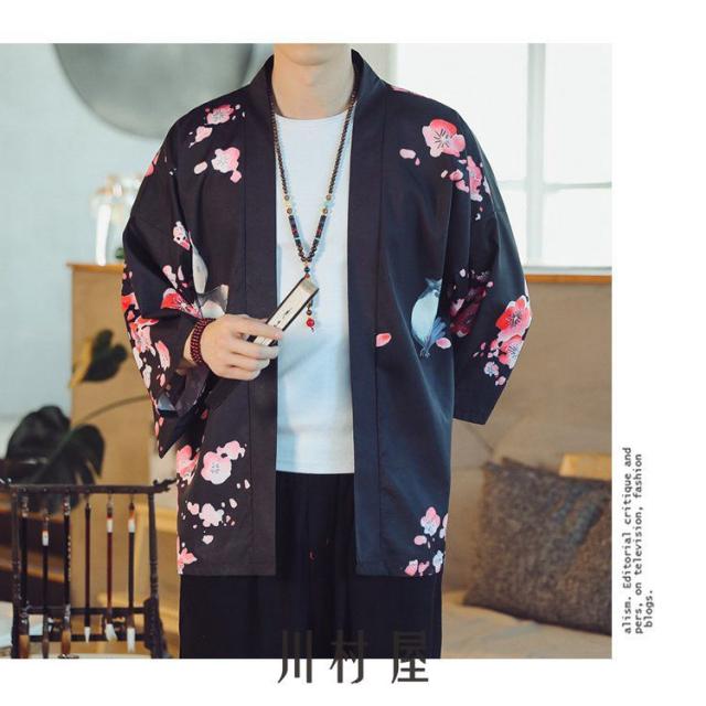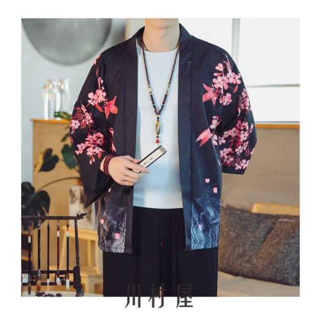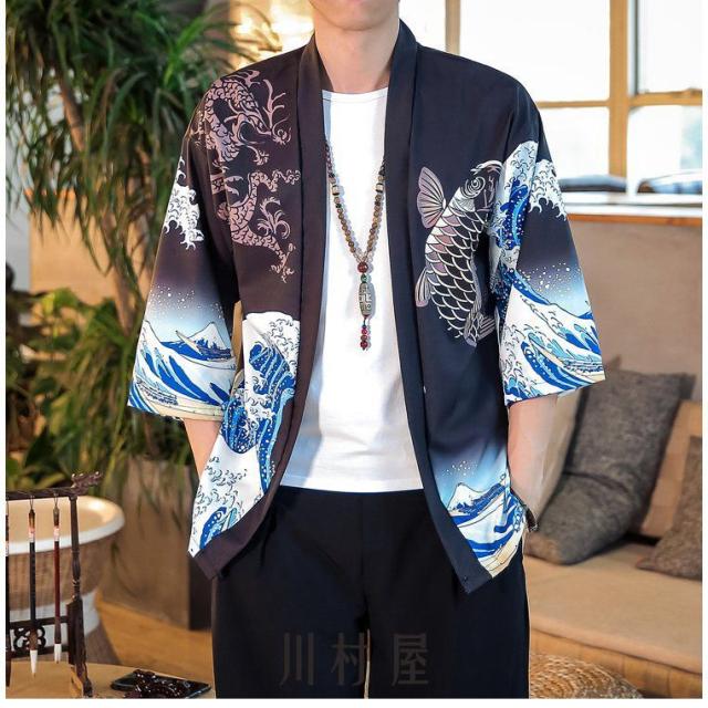 メンズ 羽織 五分袖 和風 羽織 夏服 はおり カーディガン 浴衣風 七分袖 男性用甚平