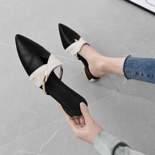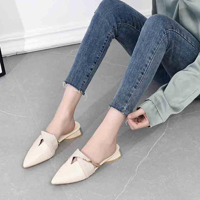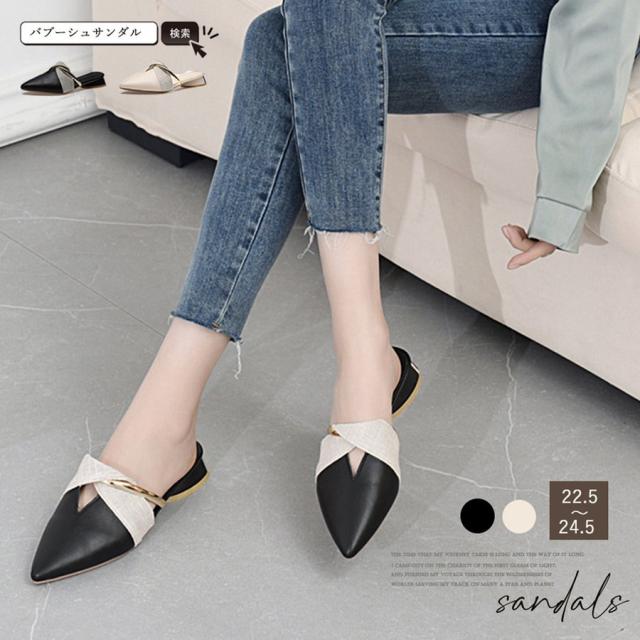 バブーシュサンダル レディース 歩きやすい ポインテッドトゥ バブーシュサンダル ミュールサンダル フラット 美脚スリッパシューズ