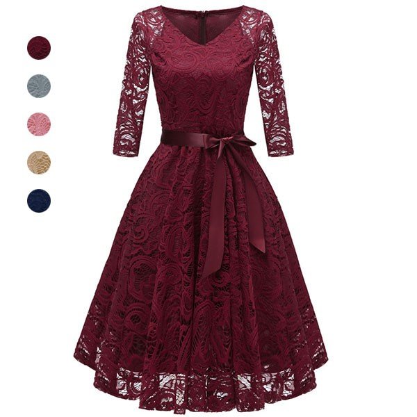 パーティードレス 袖あり 長袖 結婚式 ロング丈 40代 20代 韓国風 大きいサイズ フォーマルドレス パーティードレス お呼ばれ レースワンピース 披露宴 謝恩会 二次会