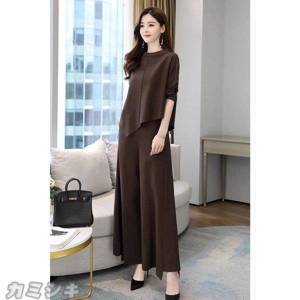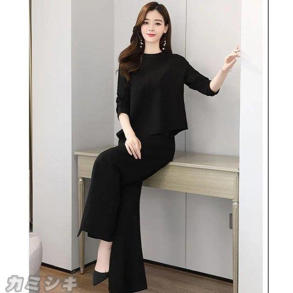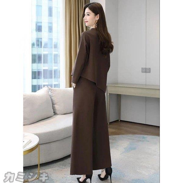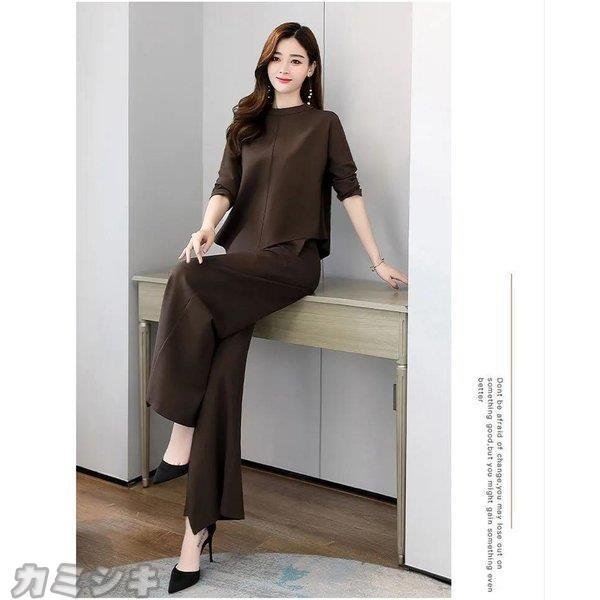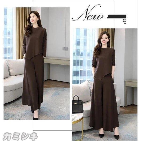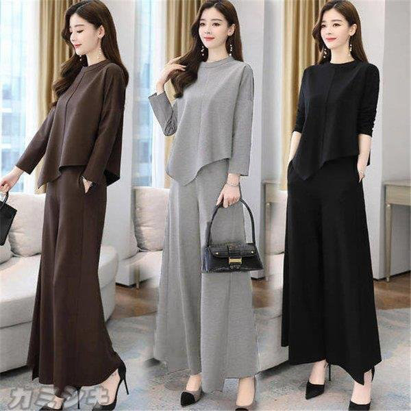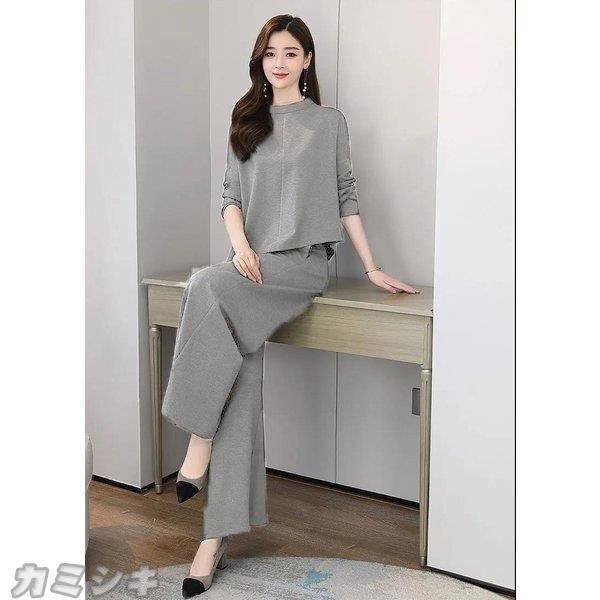 レディース セット アップ ニット パンツスーツ 上下セット トップス パンツ スリット セット ガウチョ ワイド パンツ セーター