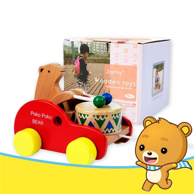 引き車 ポコポコくまさん 引っ張るおもちゃ 音の出るおもちゃ 木製 知育玩具 可愛い 歩行練習 プレゼント お誕生日 お祝い