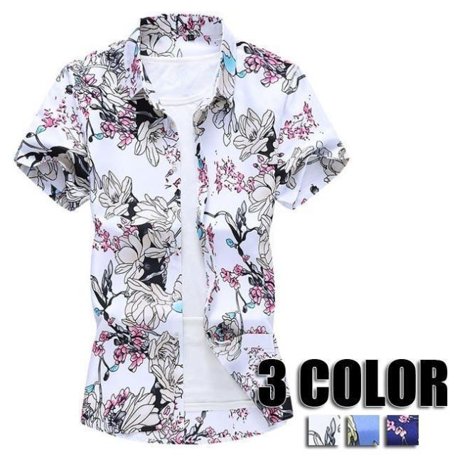 夏 メンズ 花柄 総柄 半袖シャツ ビーチシャツ アロハシャツ メンズ 夏 大きいサイズ 夏シャツ アロハシャツ ハワイアンシャツ