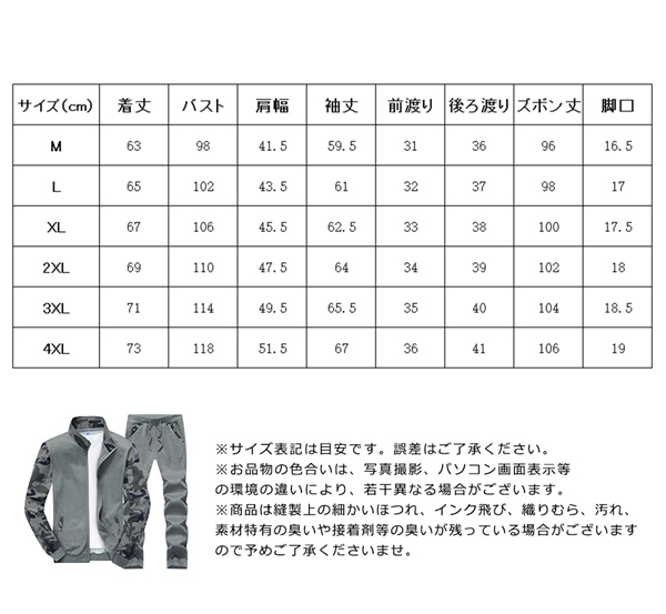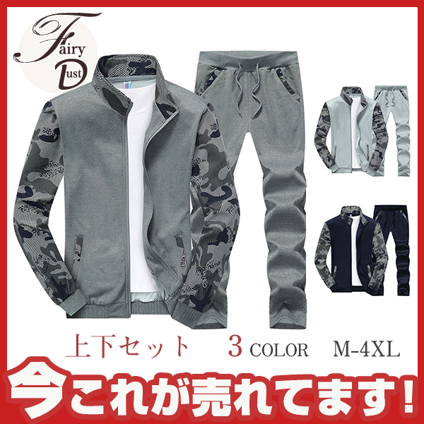 迷彩柄 春秋 メンズ メンズ 上下セット 運動服 ジャージ 長袖 セットアップ カジュアル トレーニングウェア スポーツウェア
