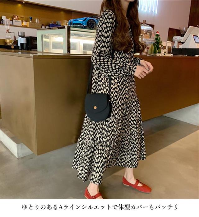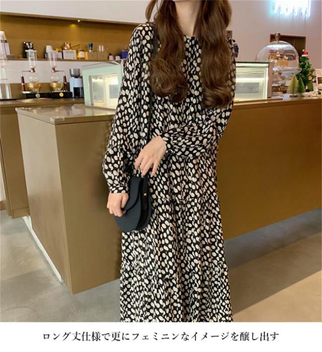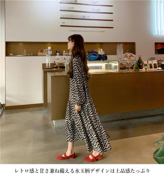 ワンピース ドレス ワンピース 水玉柄 ロングワンピ マキシ丈ワンピース 長袖ワンピース 柄ワンピ ドット柄 レディース 春秋 夏 長袖