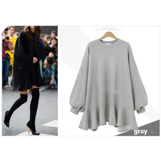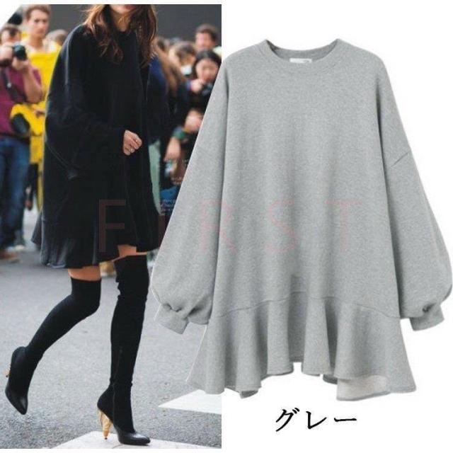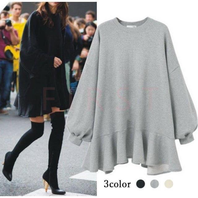 秋 ブラウス ブラウス 40代 新作 長袖トップス スウェットトレーナー 無地フレアブラウス ロング丈 大きいサイズTシャツ 着痩せ 韓国風 レディース