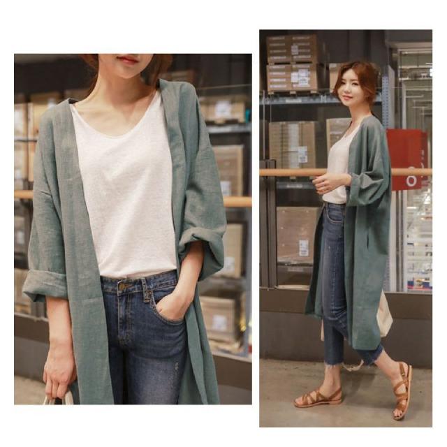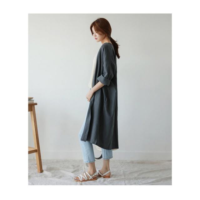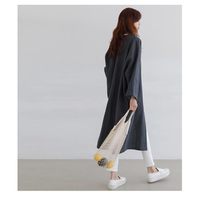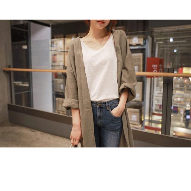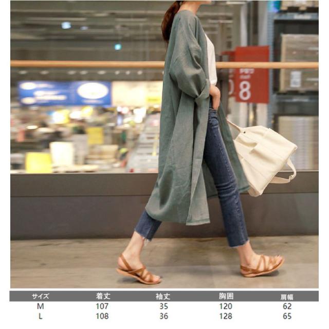 春新作 カーディガン 亜麻 レディース カーディガン 超ロング 綿麻混 ロング 薄手 マキシ丈 Aライン コットンリネン 長袖 無地 トレンチコート