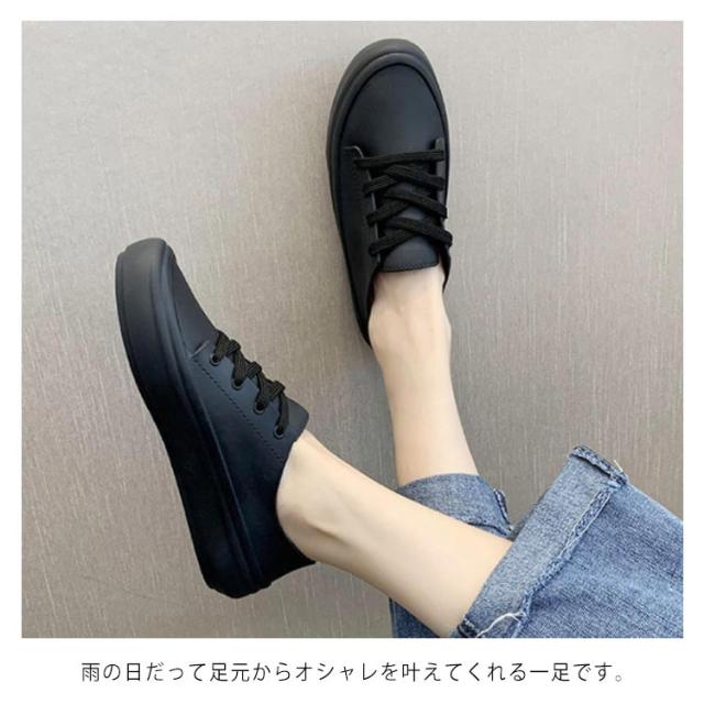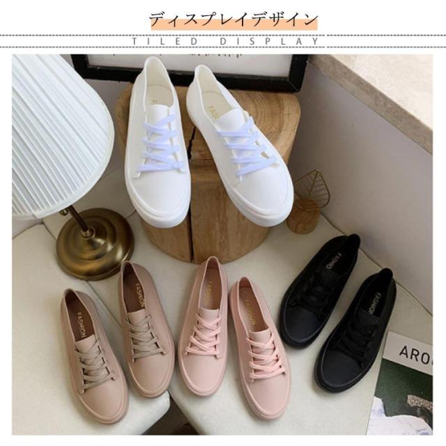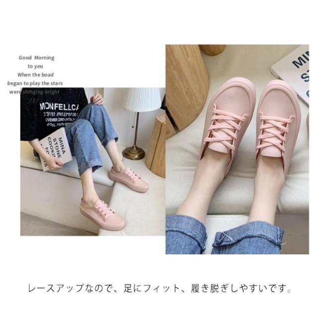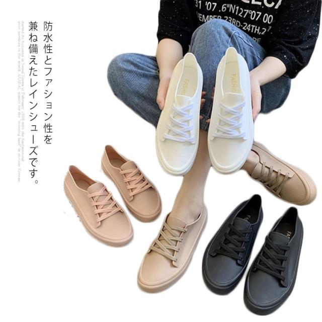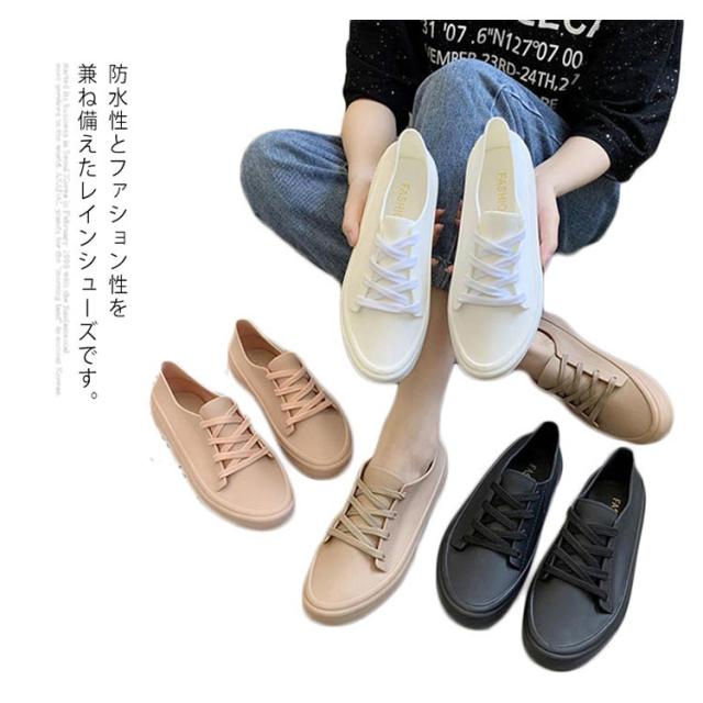 カジュアル レースアップ レインシューズ レイングッズ レディース 無地 フラット 雨靴 防水 通勤 シューズ 通学 梅雨対策 軽量 滑り止め お洒落 レインシューズ