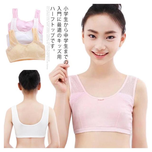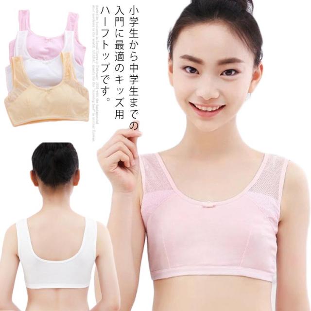 スポーツブラ ガールズ ブラジャー ハーフトップ ジュニア ハーフトップ 女児 女の子 下着 カップ付 ノンワイヤー キャミソール 中学生 小学生 通気性 インナー