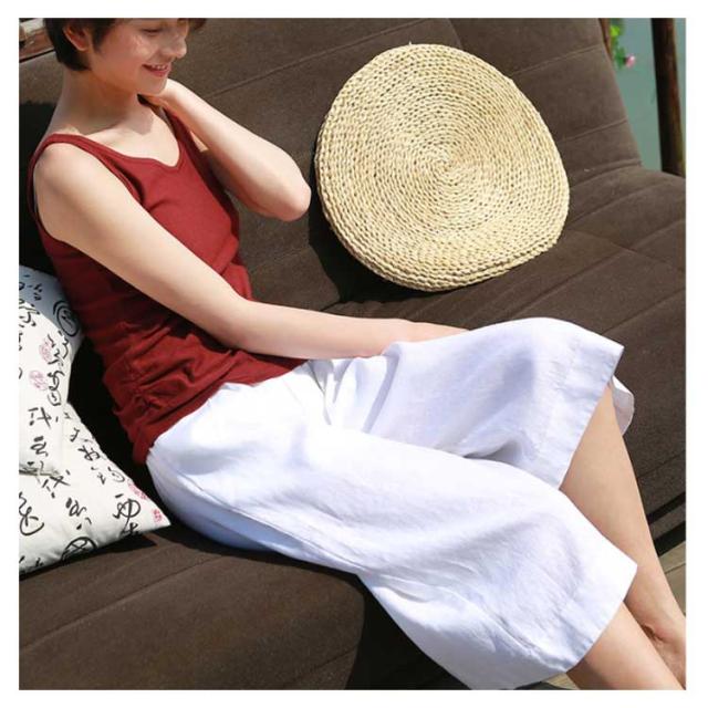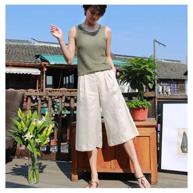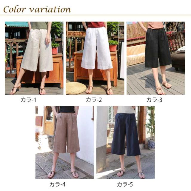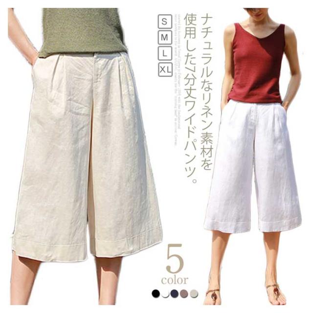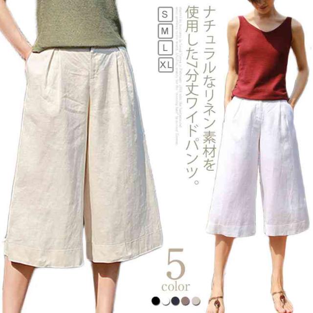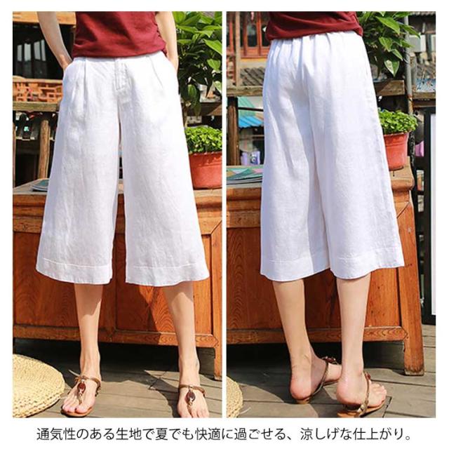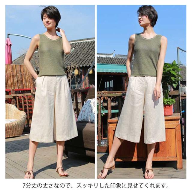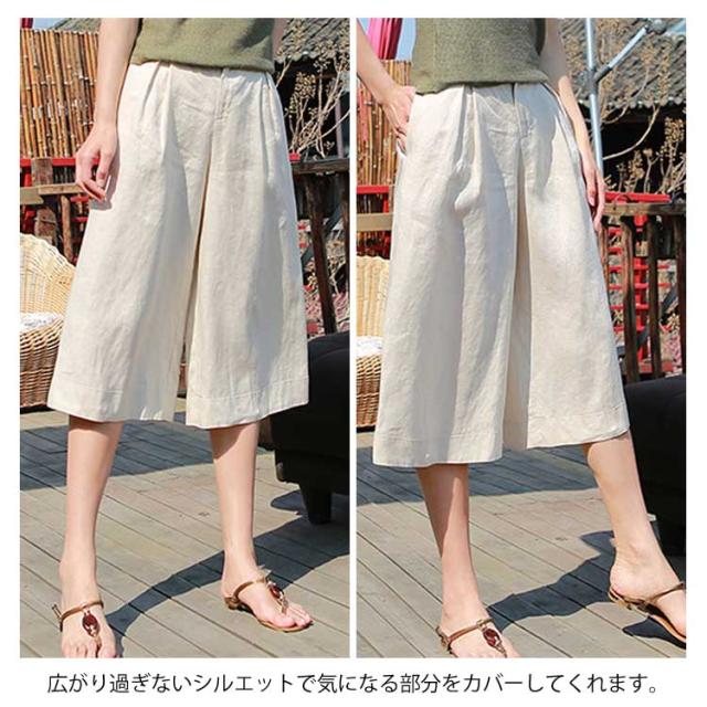 7分丈 ワイドパンツ リネン混 ハーフパンツ 麻混 ボトムス ストレッチ キュロットパンツ お洒落 ハイウエスト ゆったり ハーフパンツ レディース 体型カバー 春服 夏服 通気性 ナチュラル ガウチョパンツ