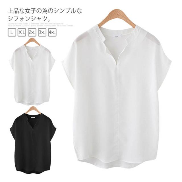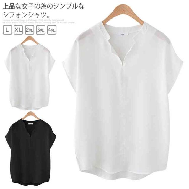 大きいサイズ 体型カバー 通勤服 トップス レディース 【L-5XL】シフォンシャツ ホワイト ブラック ブラウス 無地 シンプル 半袖 夏服 OL 【L-5XL】シフォンシャツ ゆったり