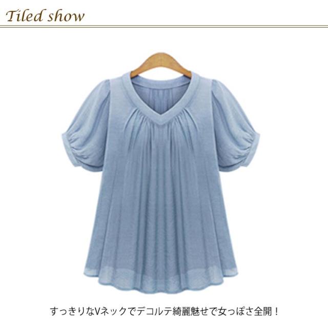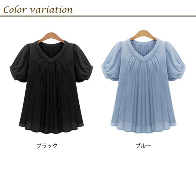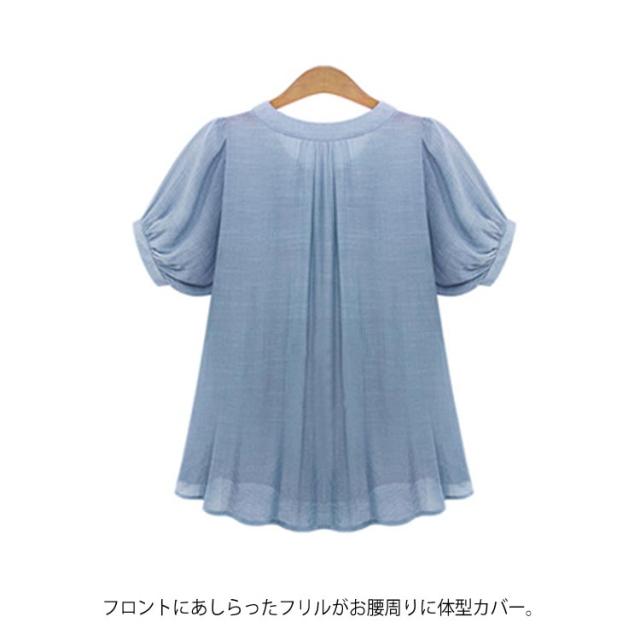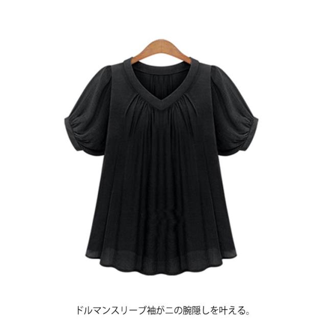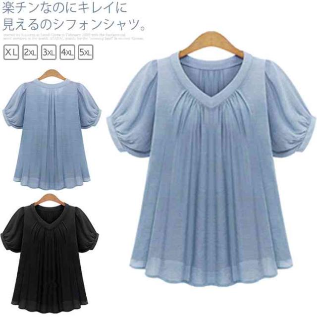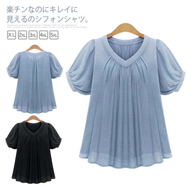 ブラウス 半袖 【XL-5XL】シフォンシャツ レディース 大きいサイズ ゆったり 体型カバー 着痩せ 無地 シンプル トップス 夏服 OL 通勤服 【XL-5XL】シフォンシャツ