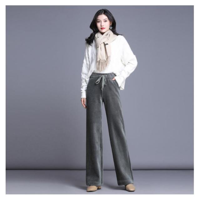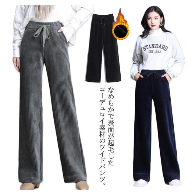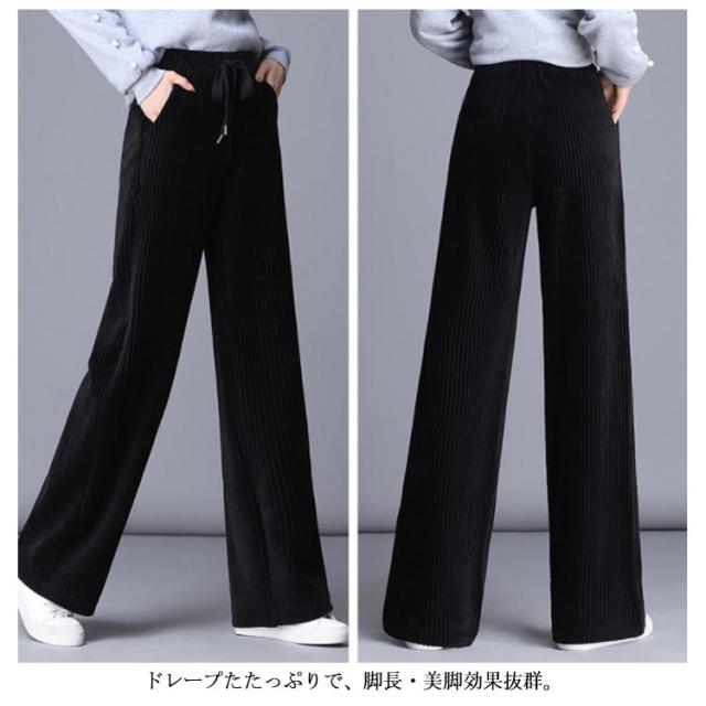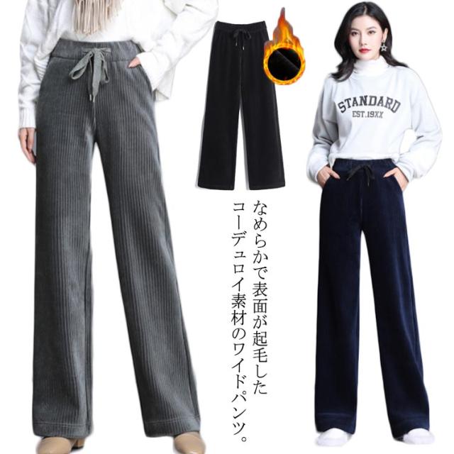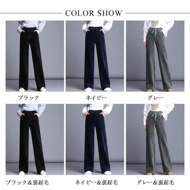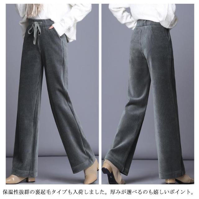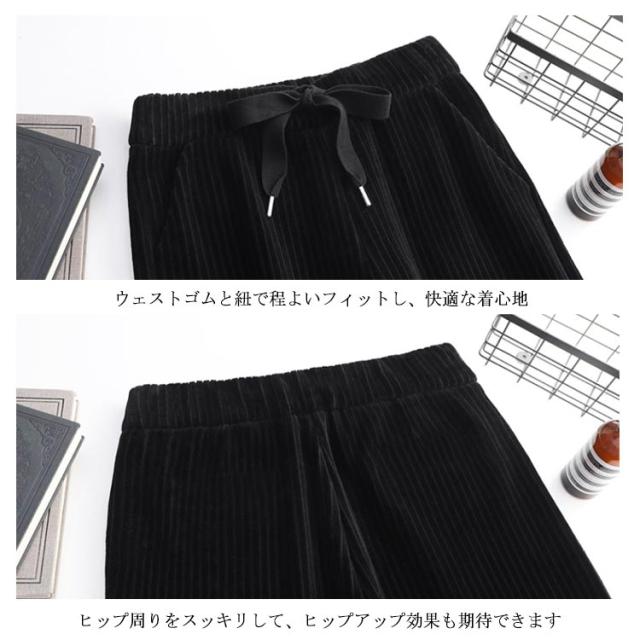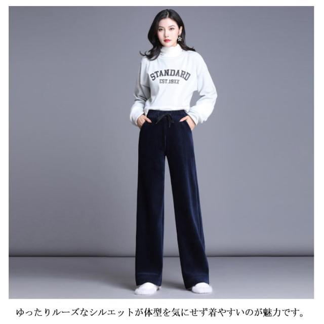 ボトムス ワイドパンツ ガウチョパンツ ベロア 長ズボン パンツ 体型カバー ロングパンツ ガウチョパンツ コーデュロイ ルーズ ハイウエスト 美脚 ウェストゴム 無地 裏起毛 厚手 防寒 秋服 レディース