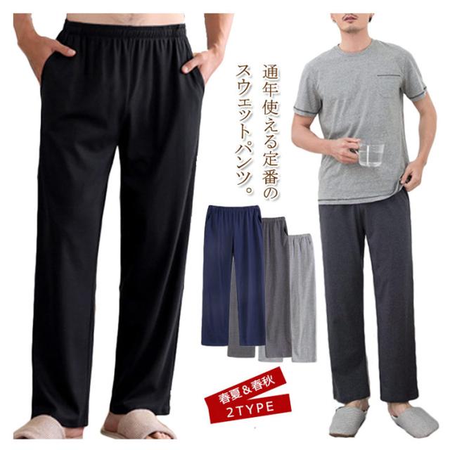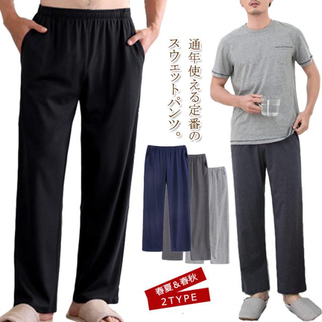 メンズ スウェットパンツ 送料無料 長ズボン ストレート イージーパンツ ルームウェア 部屋着 リラックスパンツ ワイドパンツ 無地 寝間着 春夏 スウェットパンツ