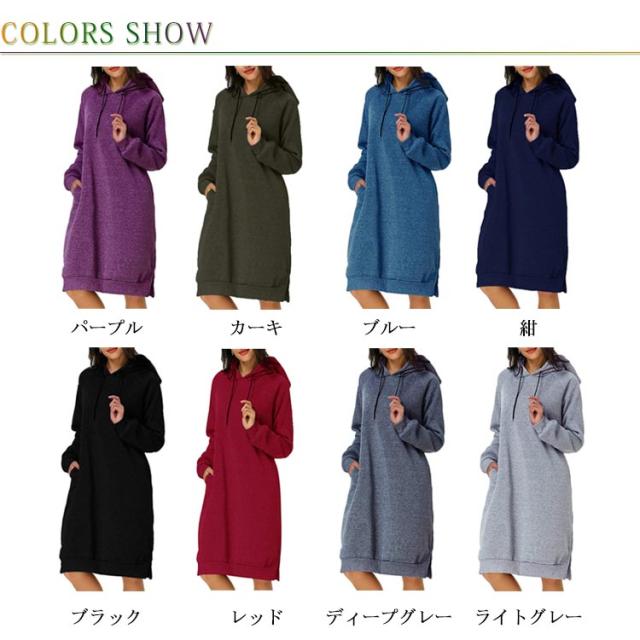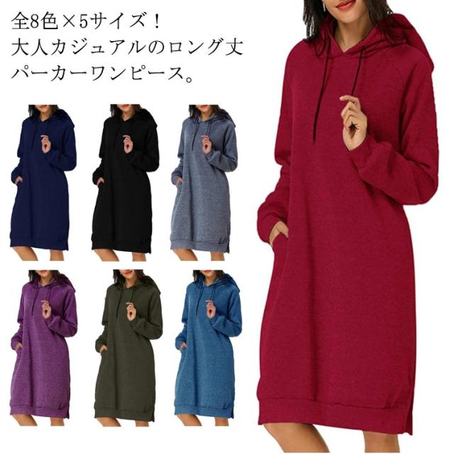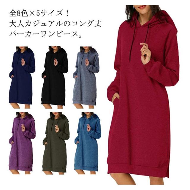 全8色×5サイズ!パーカーワンピース ロングワンピース パーカー レディース 全8色×5サイズ!パーカーワンピース ロングパーカー フード付き パーカーワンピ プルオーバー カジュアル 大きサイズ ロング丈