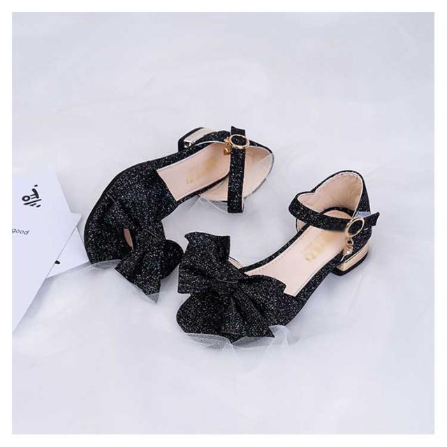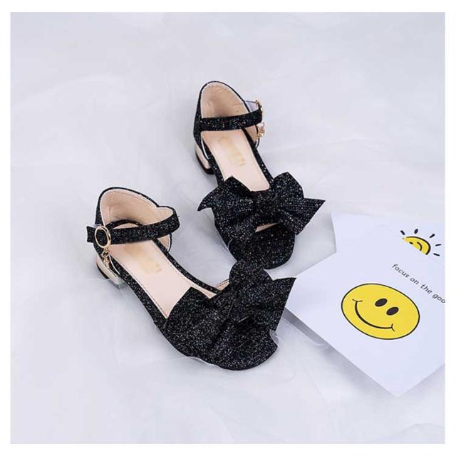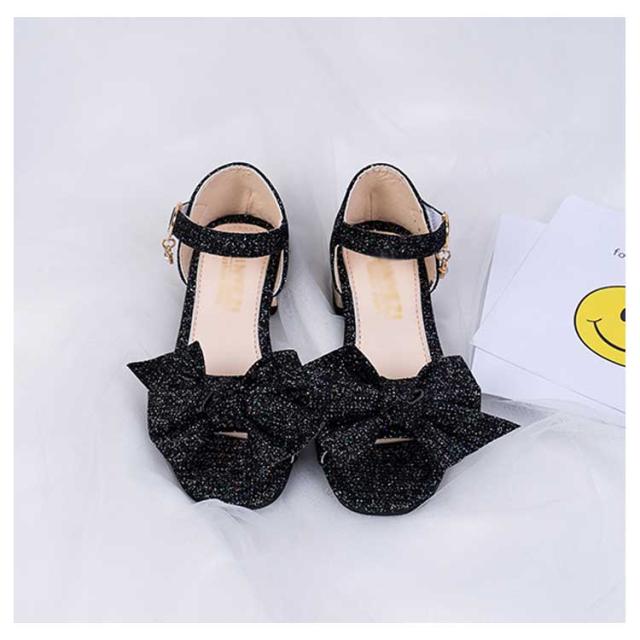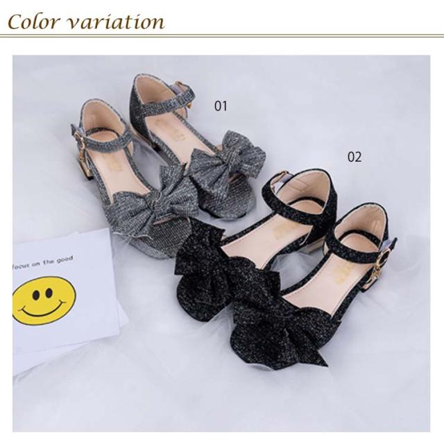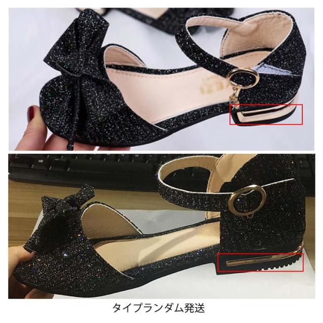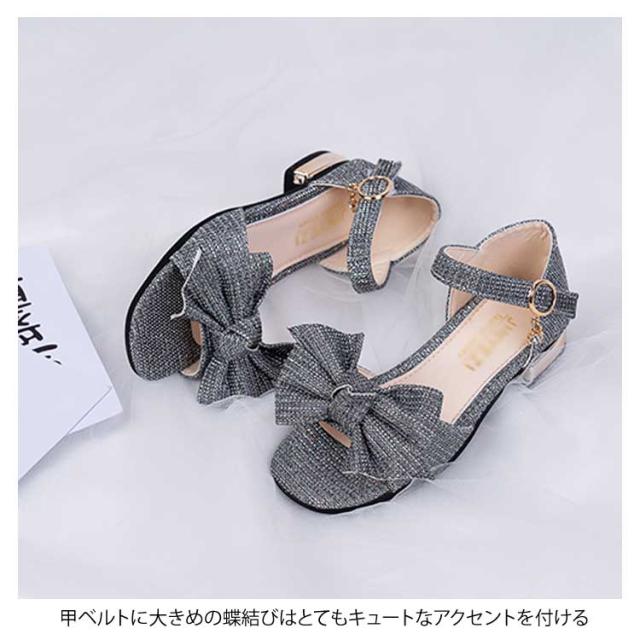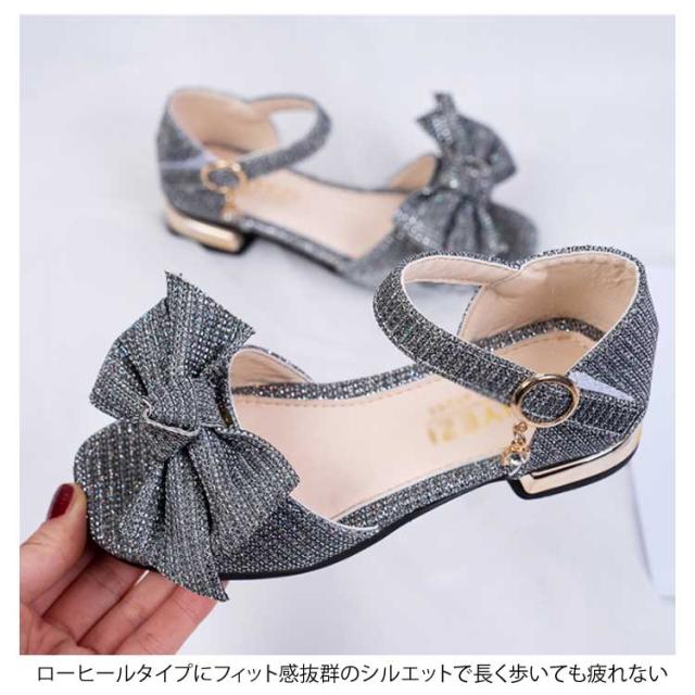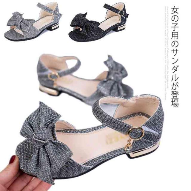 キラキラ ローヒール キッズ 女の子 ストラップサンダル 蝶結び ジュニア キッズ 女児 靴 ブリンブリン シューズ PU 夏物 サンダル