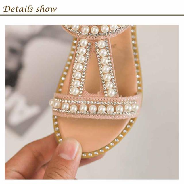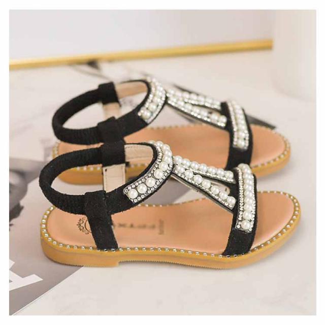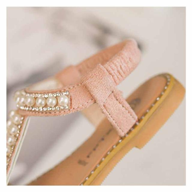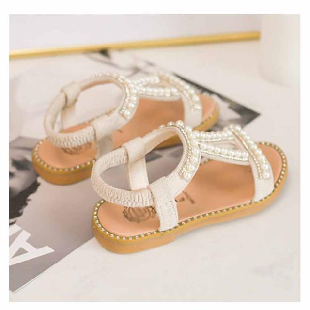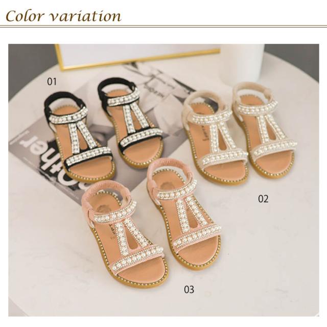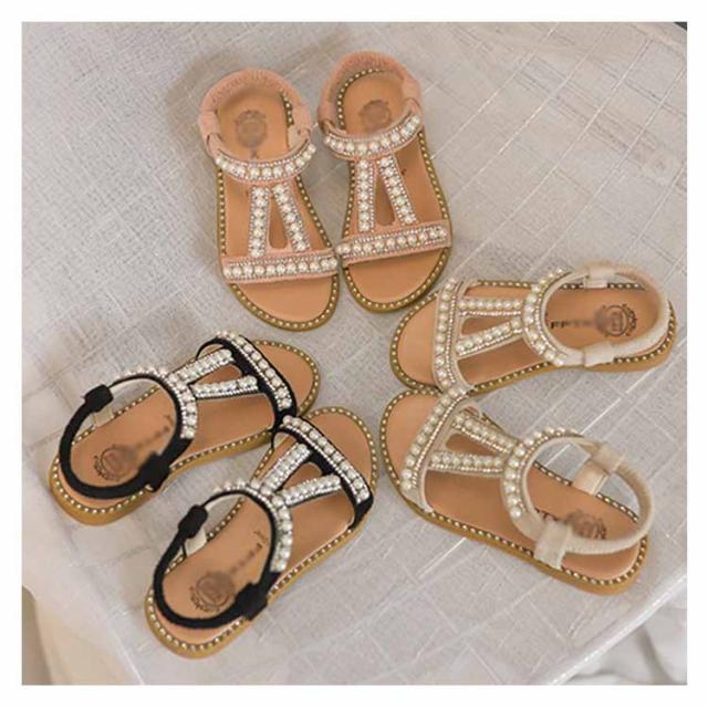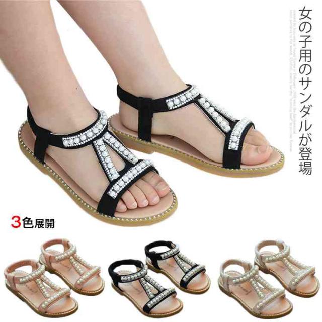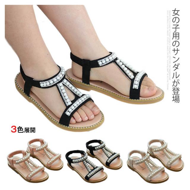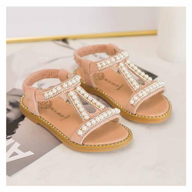 ぺったんこ 子供用 女の子 PU ストラップサンダル 女児 パール 姫系 靴 オシャレ キッズ シューズ 夏物 子供用 サンダル