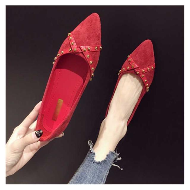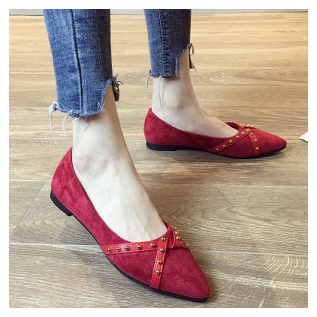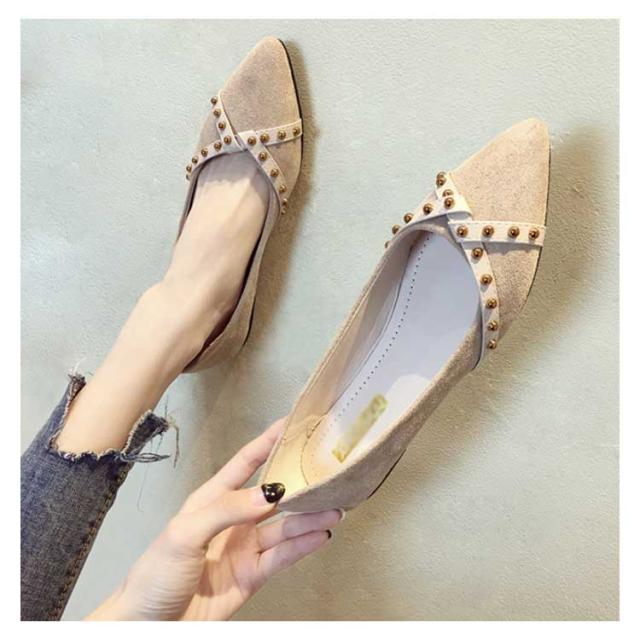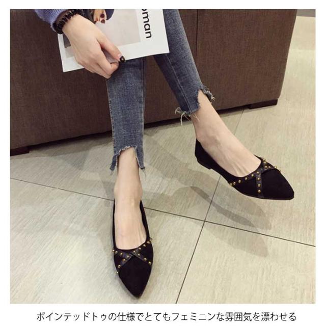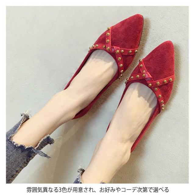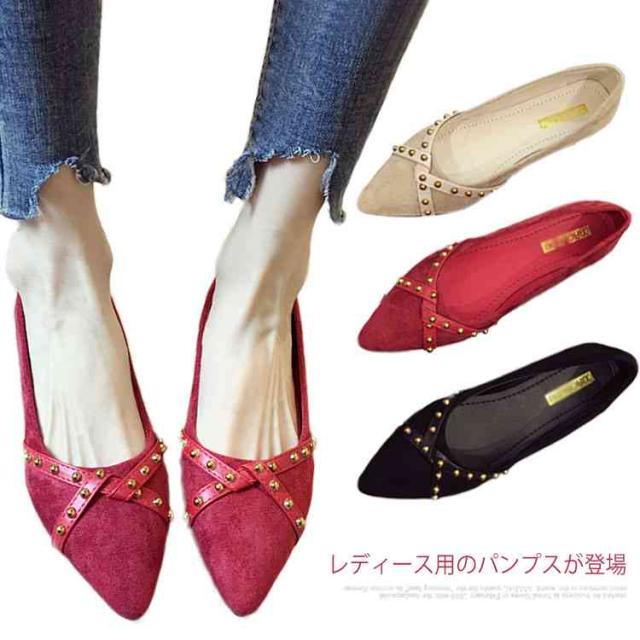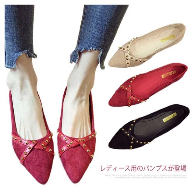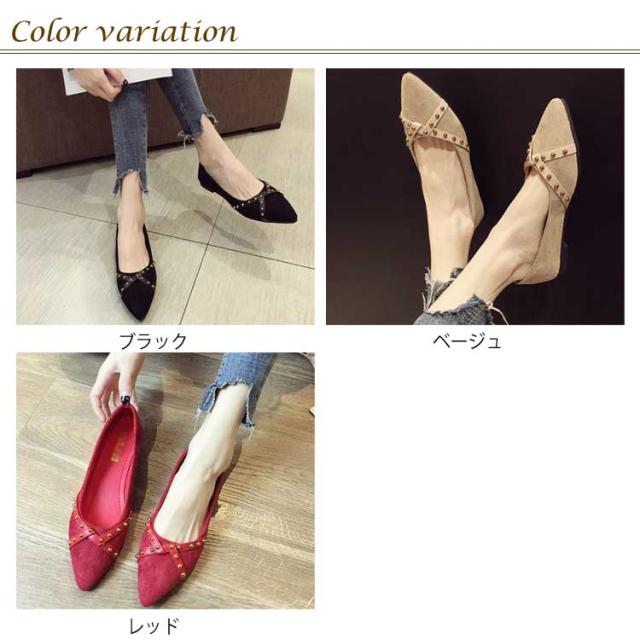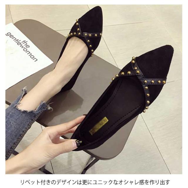 リベット ポインテッドトゥ レディース シューズ パンプス 靴 ローヒール PU ローカット 女性用 くつ 春 夏 秋 レトロ パンプス