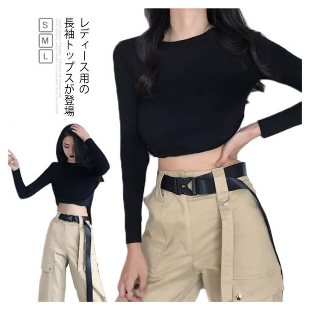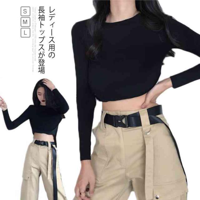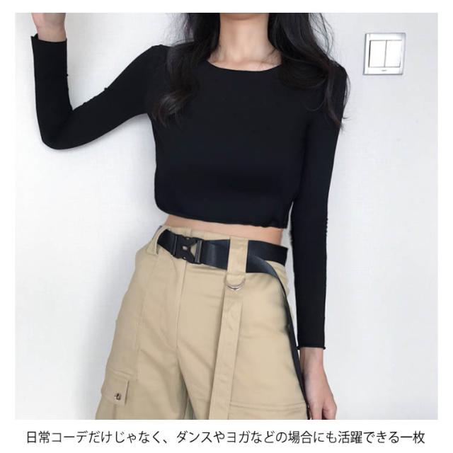 長袖Tシャツ レディース へそ出し トップス セクシー Tシャツ シンプル カットソー ショート丈 女性用 ヘソ出し ブラウス ダンス ヨガ送料無料