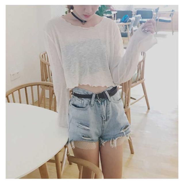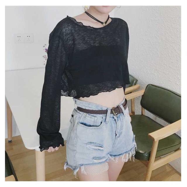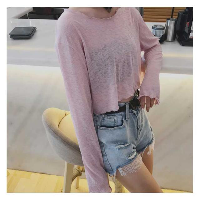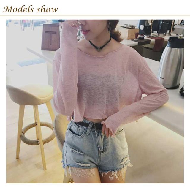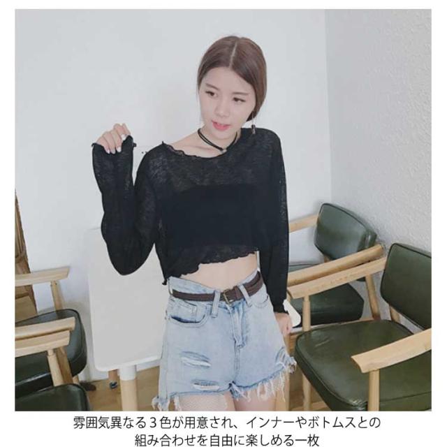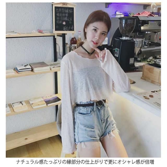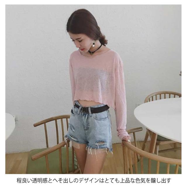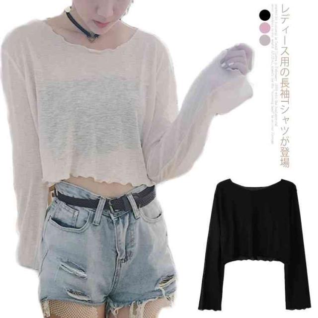 透明 レディース 長袖Tシャツ ゆったり ブラウス 長袖Tシャツ ショート丈 Tシャツ トップス 女性用 カットソー ヘソ出し へそ出し