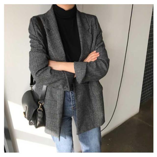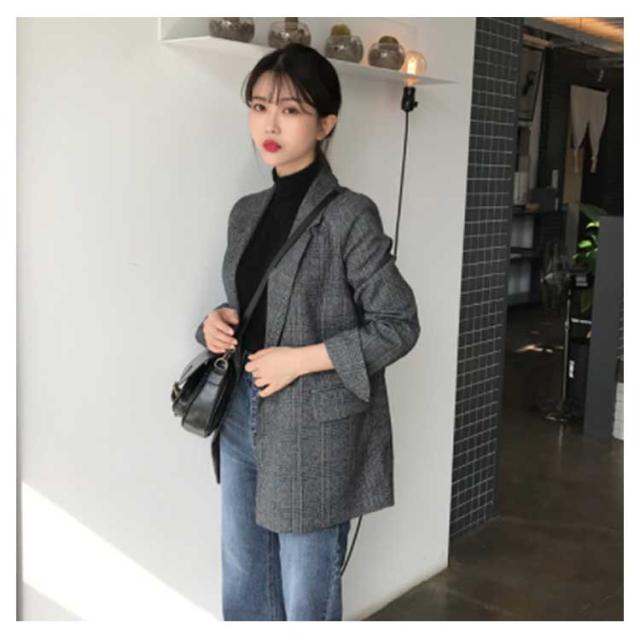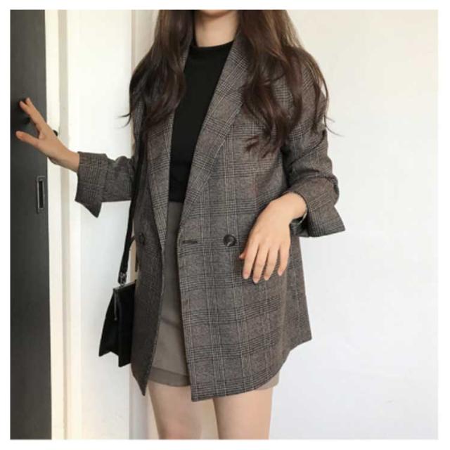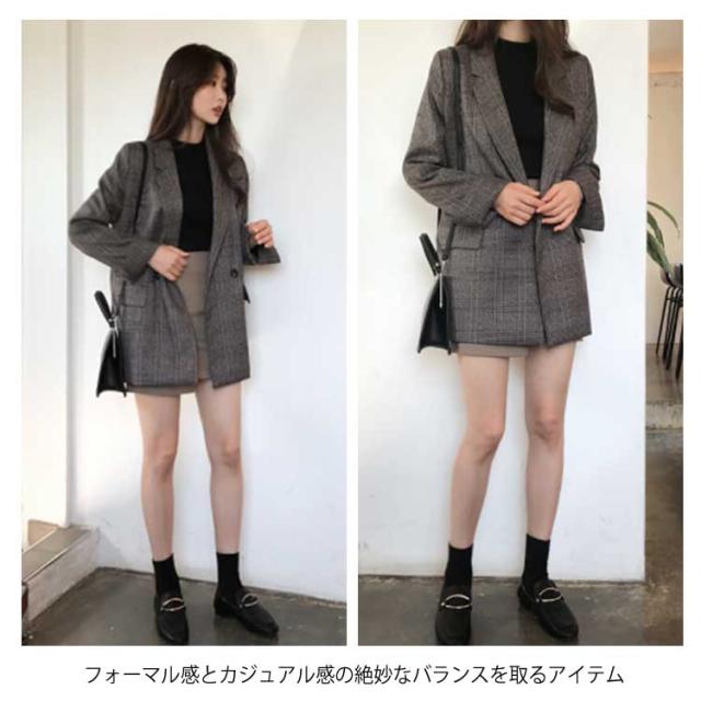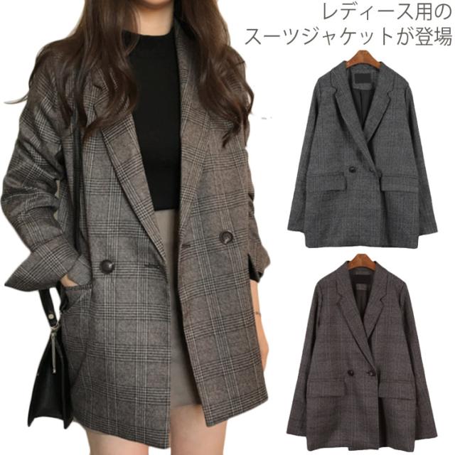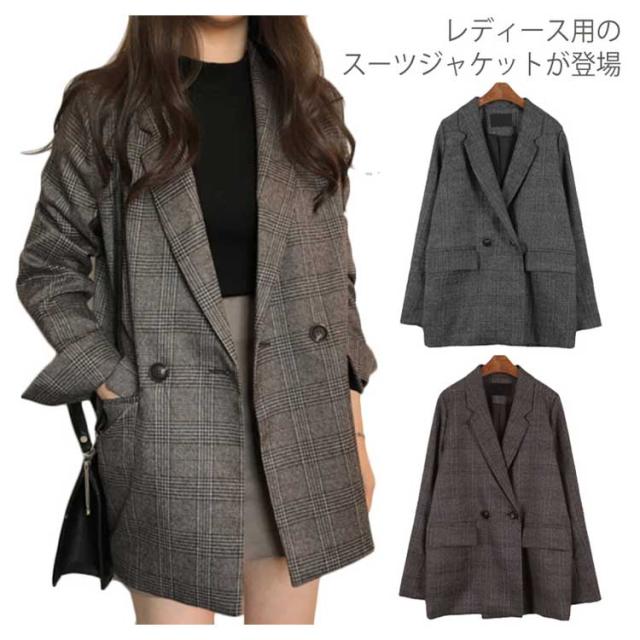 レディース チェック柄 スーツジャケット スーツトップス ブレザー ゆったり レトロ ジャケット 女性用 テーラード テーラード
