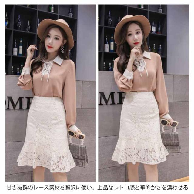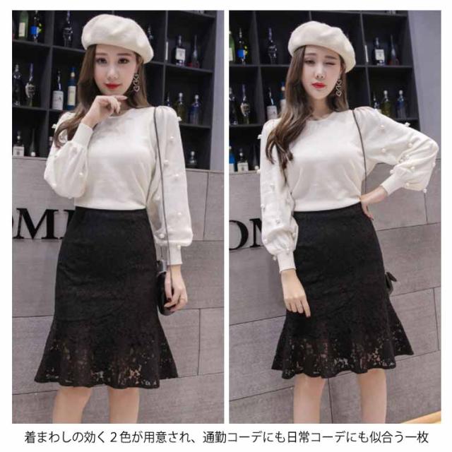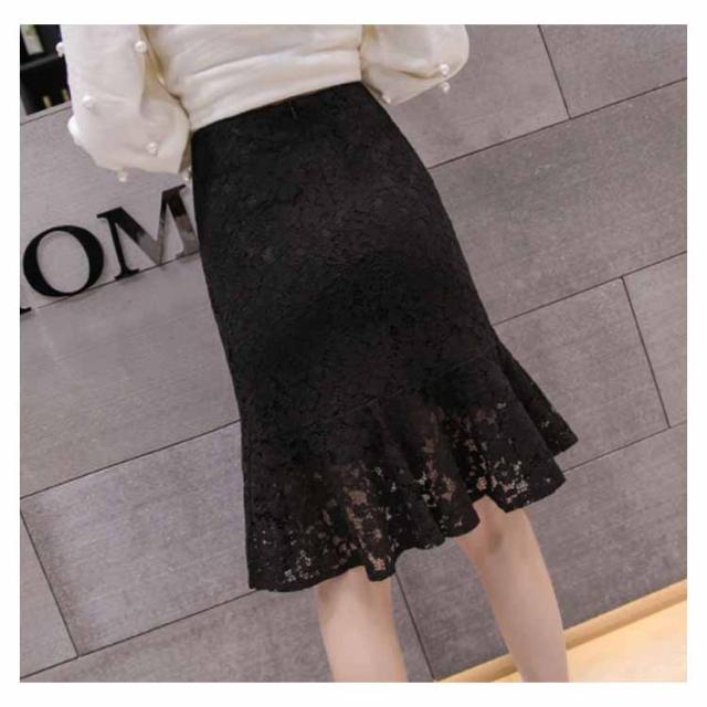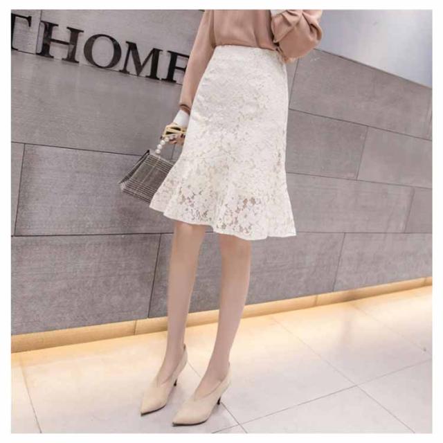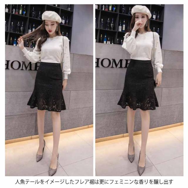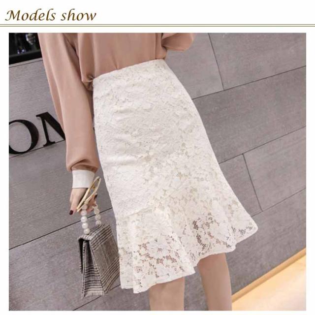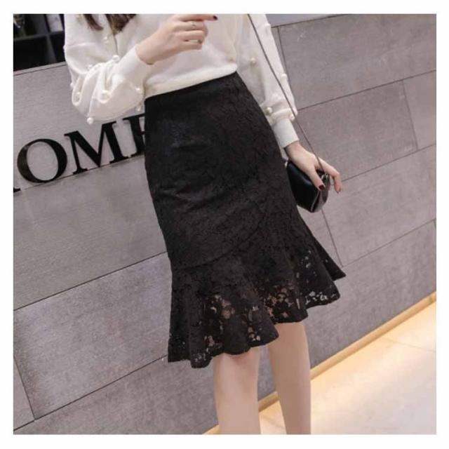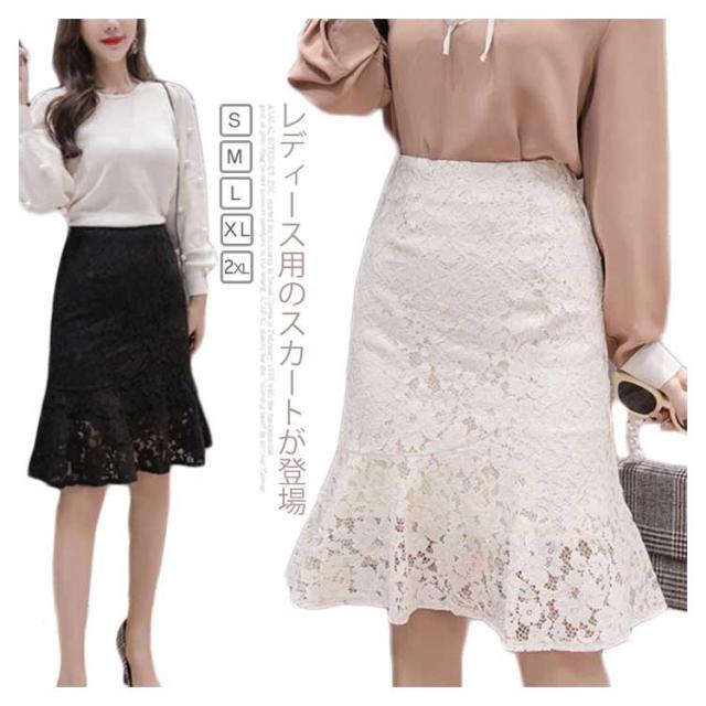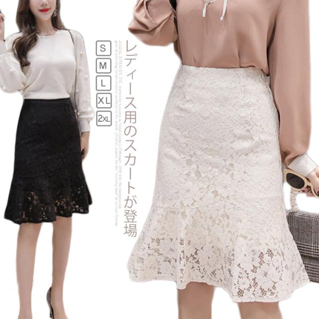 レーススカート レディース ミディアム タイトスカート スカート 人魚テール フレア裾 女性用 膝丈スカート ボトムス レーススカート