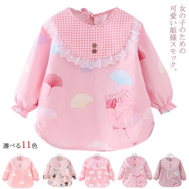 キッズ 保育園 防水 送料無料 外遊び スモック 可愛い 女の子 長袖スモック 送料無料 ベビースモック お食事エプロン エプロン ポケット付き 汚れ防止 洗濯機可 こども コットン100% 幼稚園 ベビー ベビーグッズ 可愛い 出産祝い プレゼント 80cm 姫系