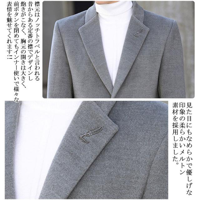 テーラードジャケット ビジネススーツ メンズ 厚手 メルトンコート メルトン メンズコート チェスターコート メルトン ミドル丈 アウター フォーマル ビジネス チェスターコート