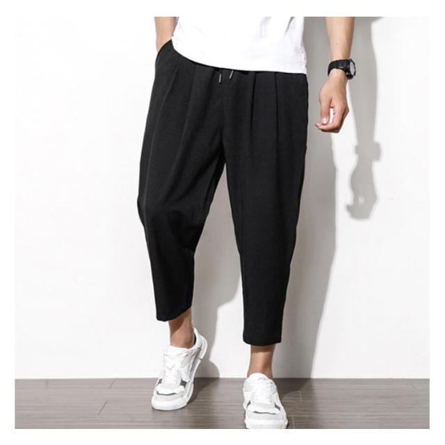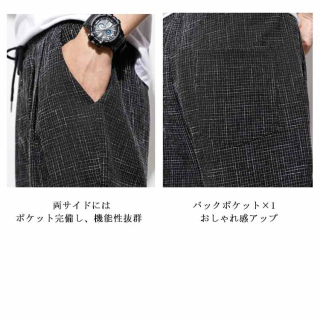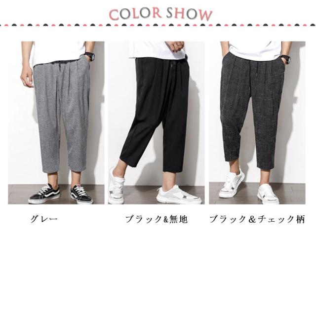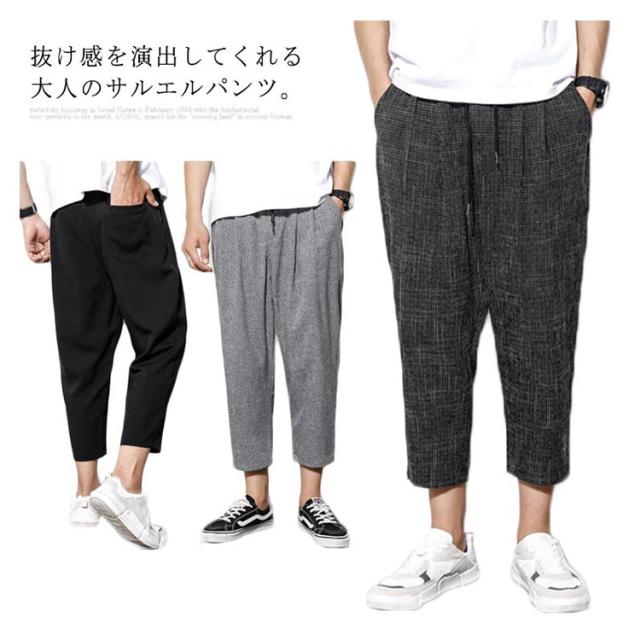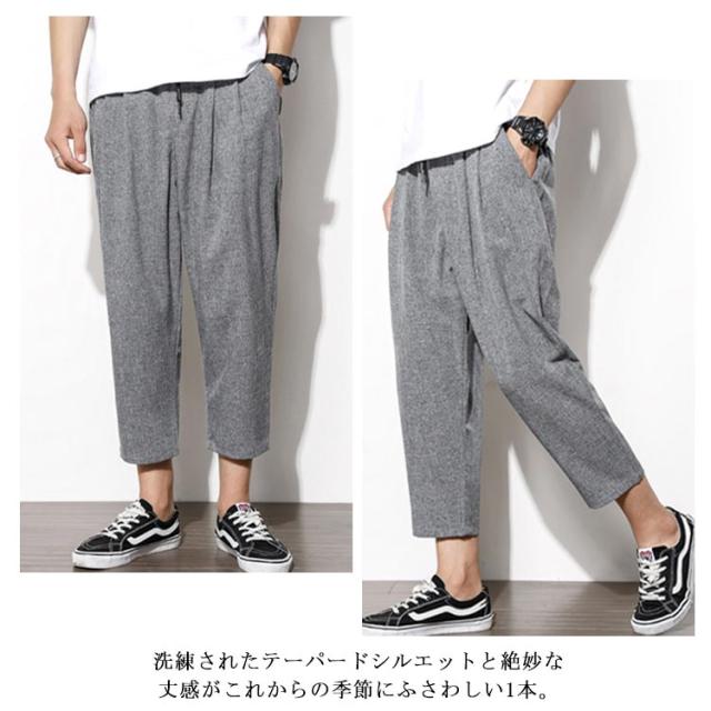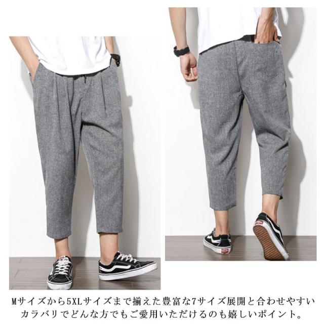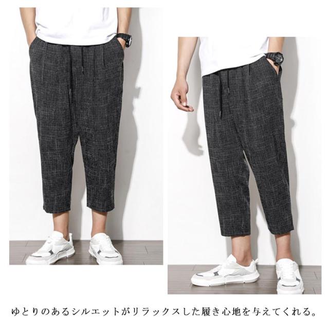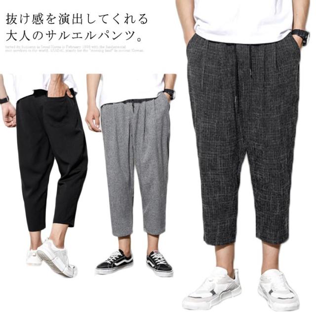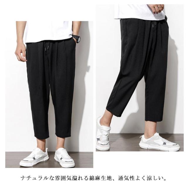 リネン 綿 麻 パンツ メンズ サルエルパンツ アンクル丈 ズボン サルエルパンツ 春 9分丈 パンツ 夏 送料無料 イージーパンツ ウェストゴム 薄手