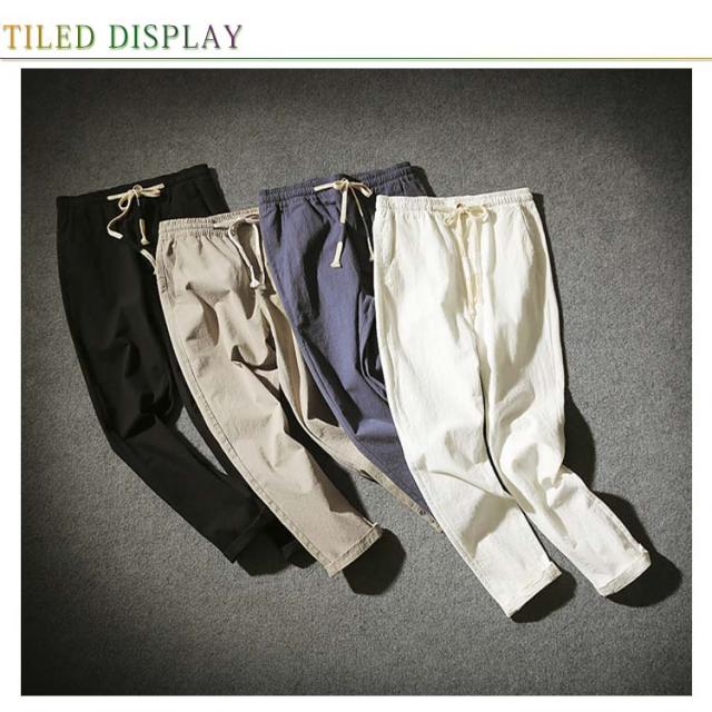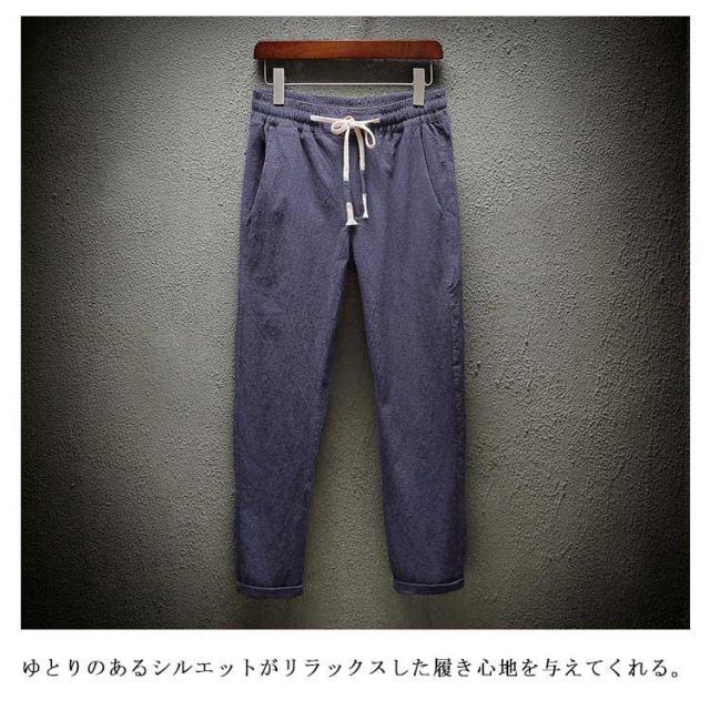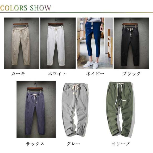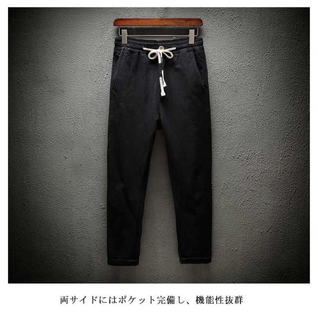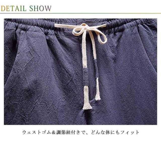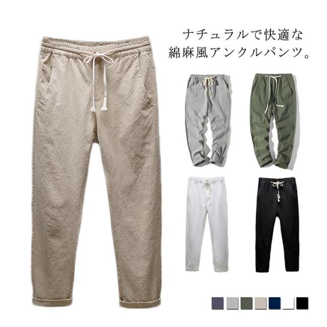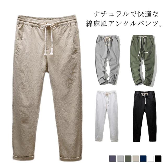 ゆるパンツ 薄手 パンツ 夏 メンズ 送料無料 綿麻風 アンクルパンツ アンクルパンツ サルエル 9分丈 大きいサイズ ウェストゴム 紐 イージーパンツ
