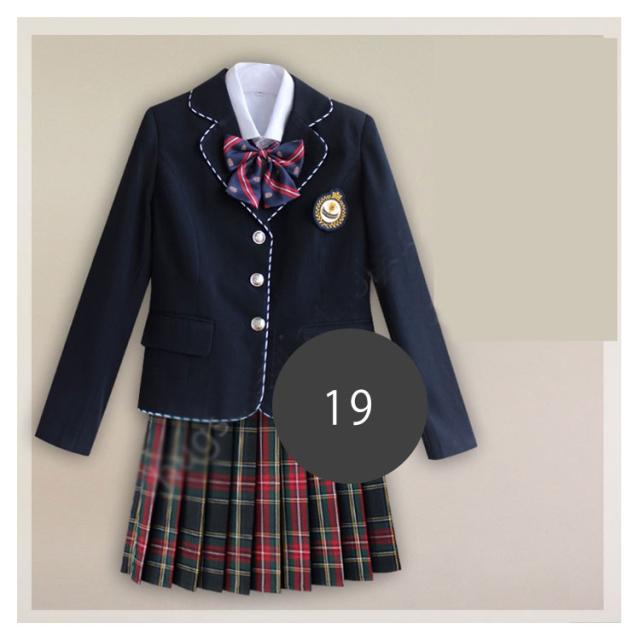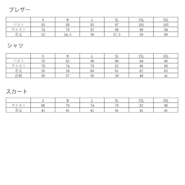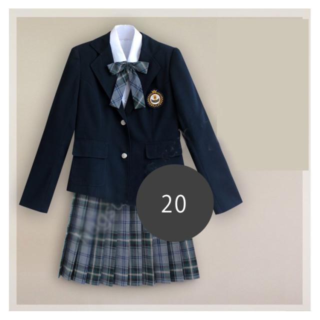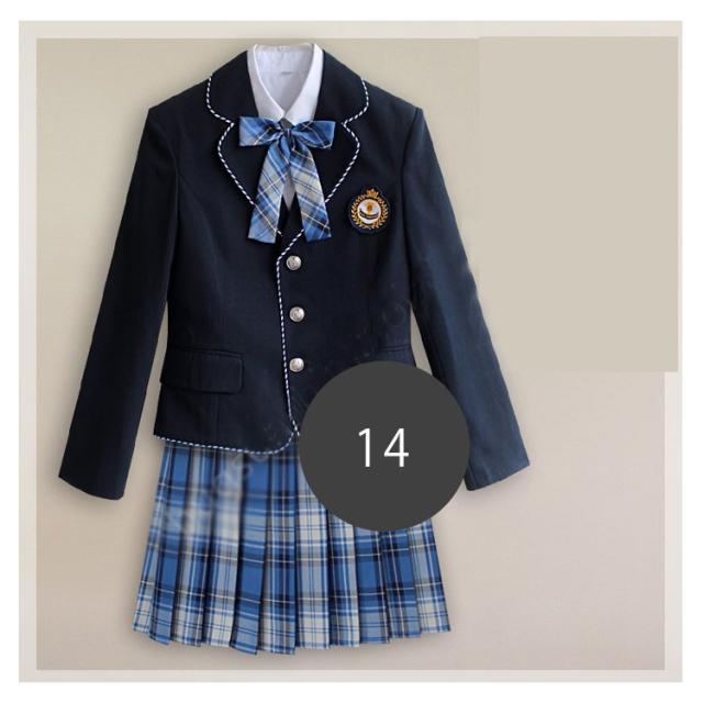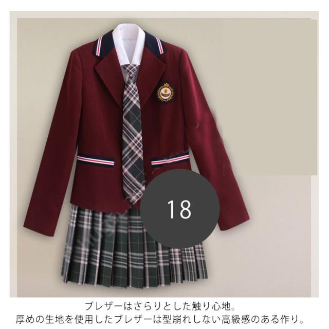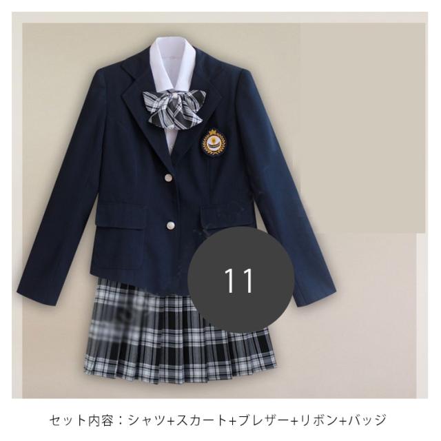| サイズについての説明 | サイズ表/セット内容:シャツ+スカート+ブレザー+リボン+バッジ |