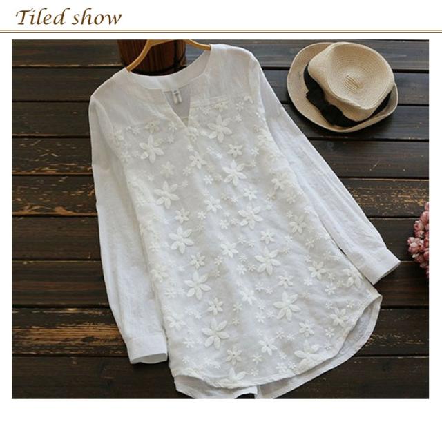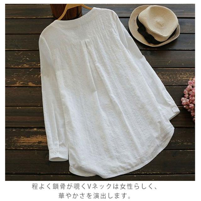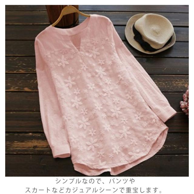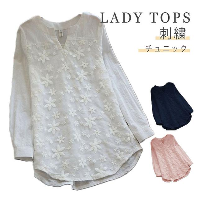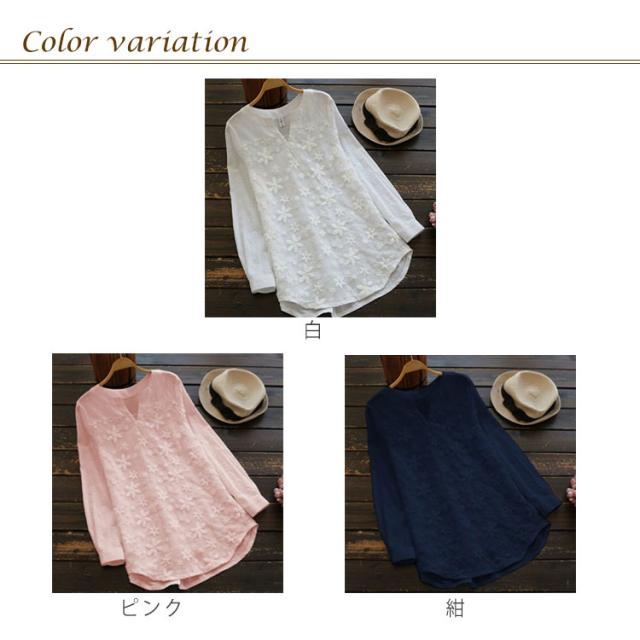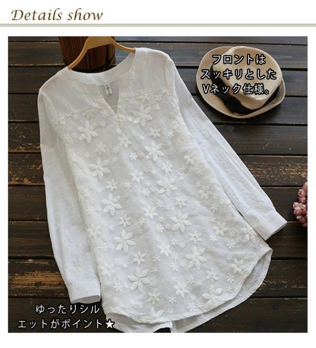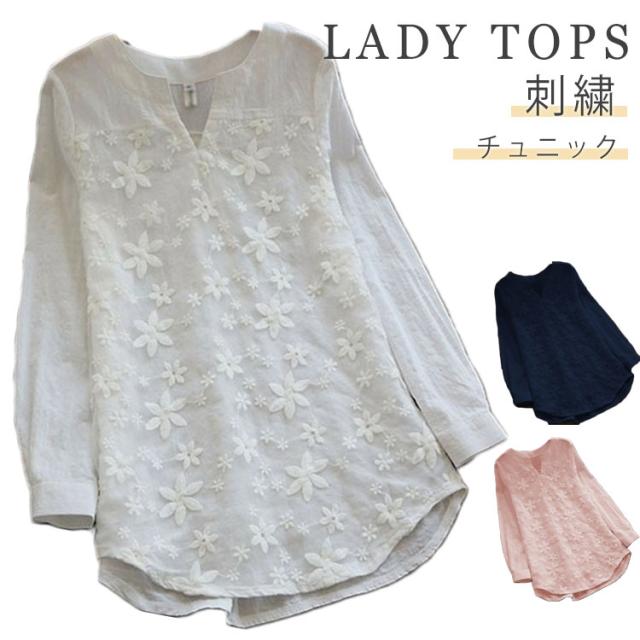 花柄 レディース 長袖 長袖 チュニック 刺繍 Vネック シャツ ブラウス プルオーバートップス ゆったり 大きいサイズ シャツ