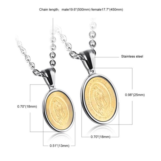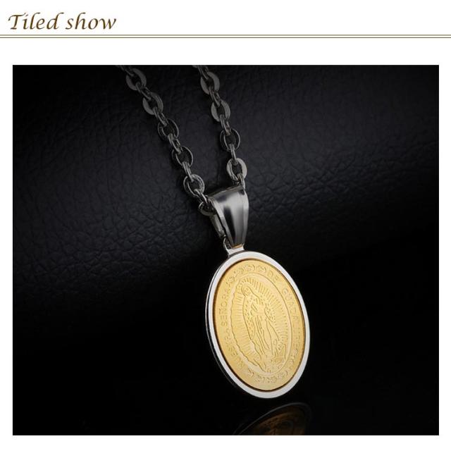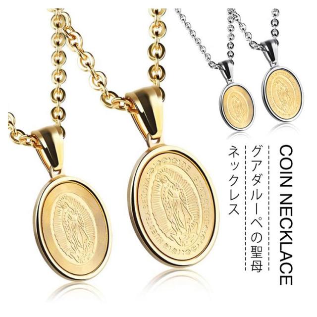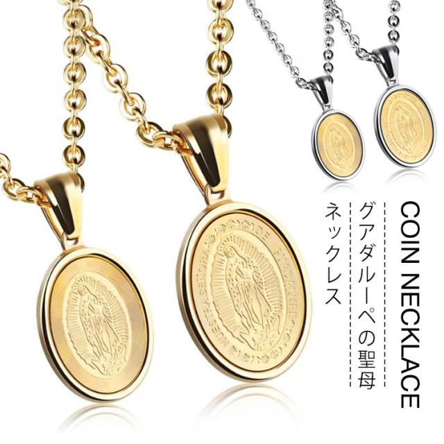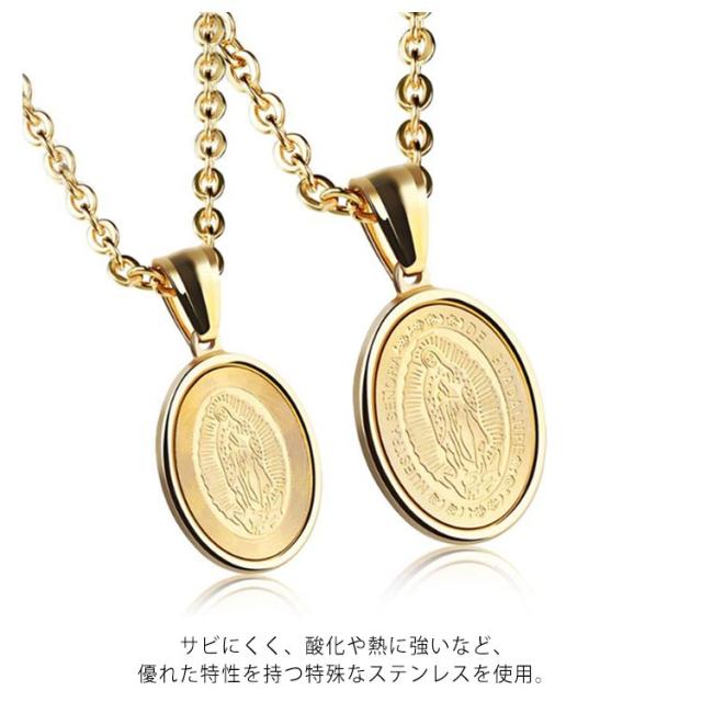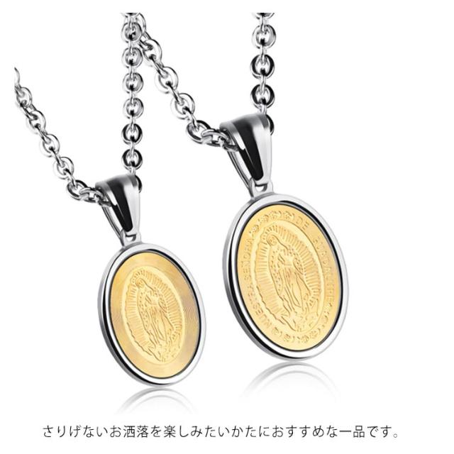 聖母マリア 父の日 ステンレス ペンダント グアダルーペの聖母 メンズ 聖母マリア コイン サージカル ネックレス チェーン ネックレス ジュエリー アクセサリー 贈り物 ネックレス 誕生日 ネックレス
